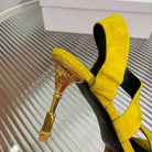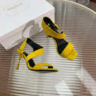 BALMAIN 25S HIGH HEEL SANDALS 95MM IN GOLDEN YELLOW SUEDE
