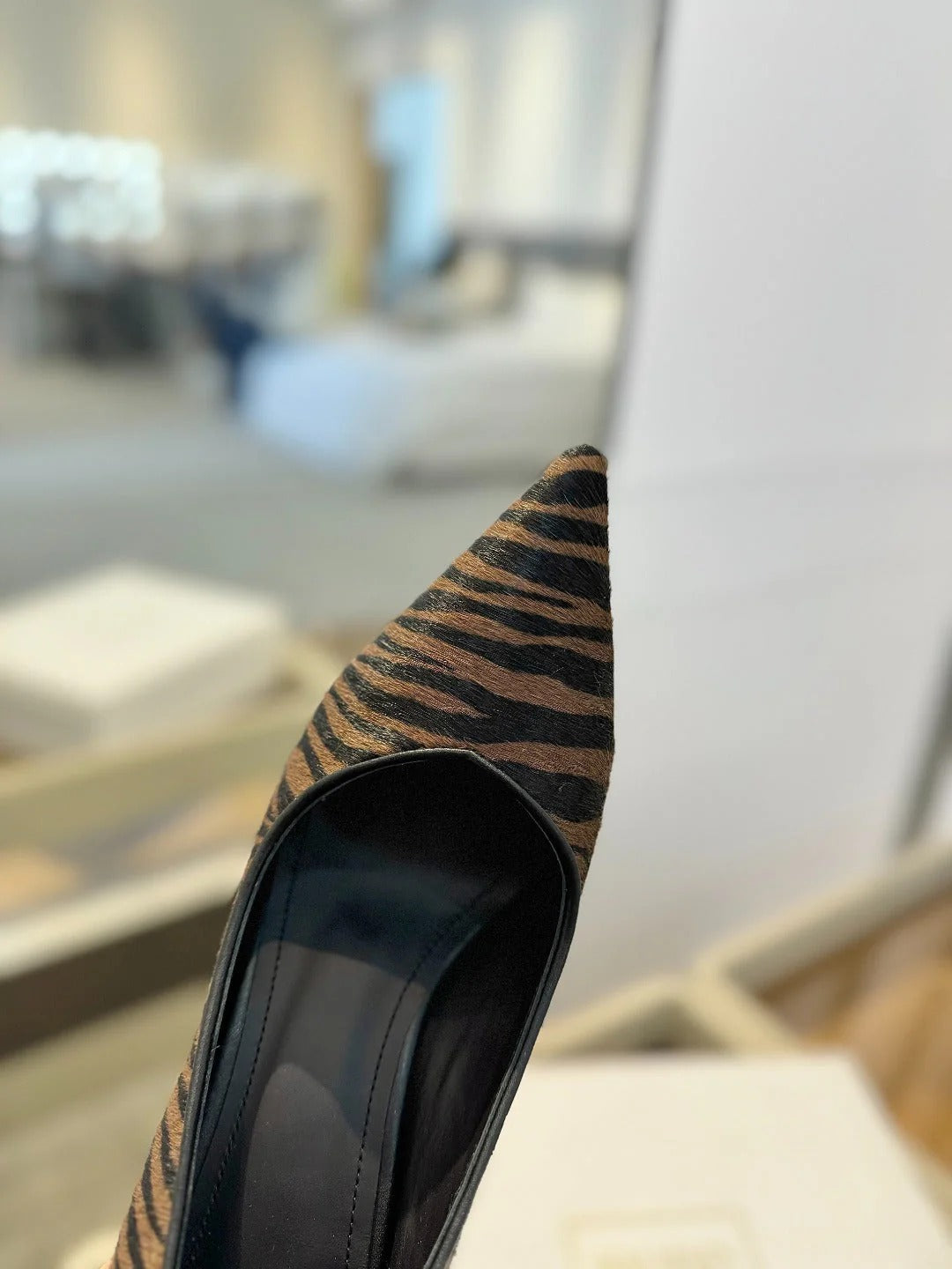 BALMAIN 25S HIGH HEELS 95MM IN BROWN AND BLACK ZEBRA PRINT CALFSKIN