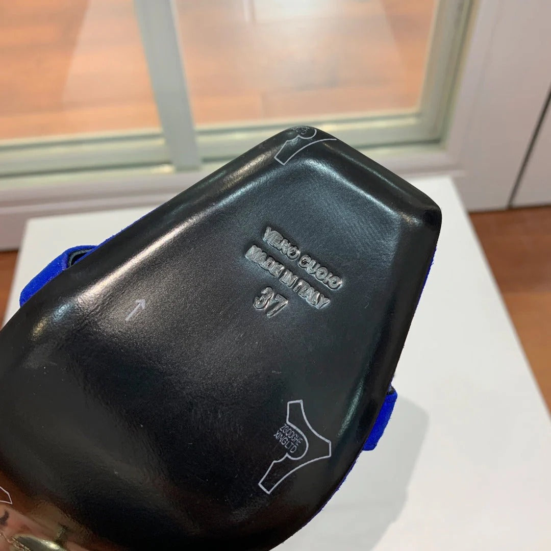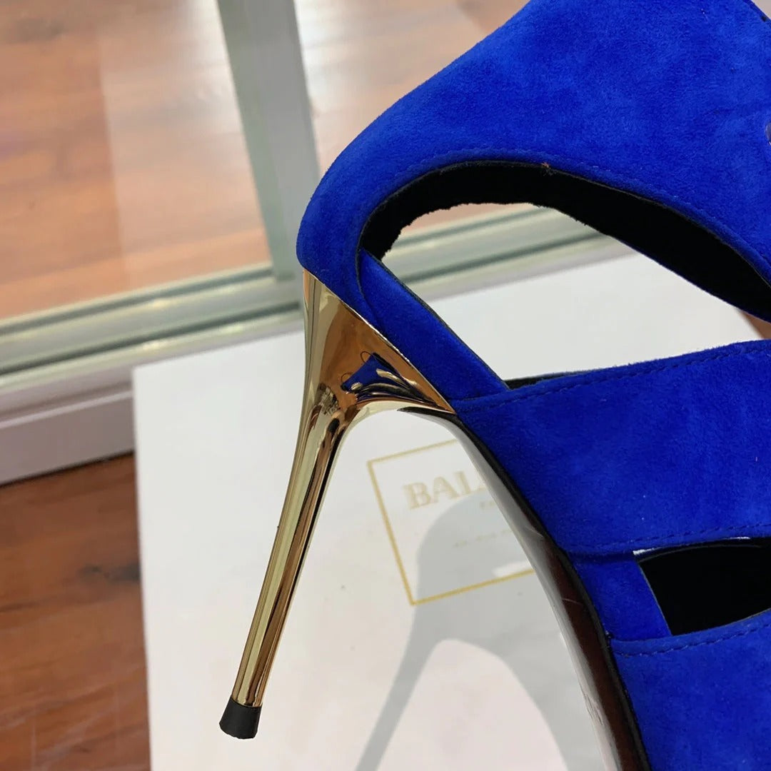 BALMAIN 25S HIGH HEELS 95MM IN DARK BLUE SUEDE WITH PEARL