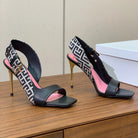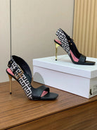 BALMAIN 25S JACQUARD KNIT SLINGBACK PUMPS 95MM IN BLACK AND PINK CALFSKIN