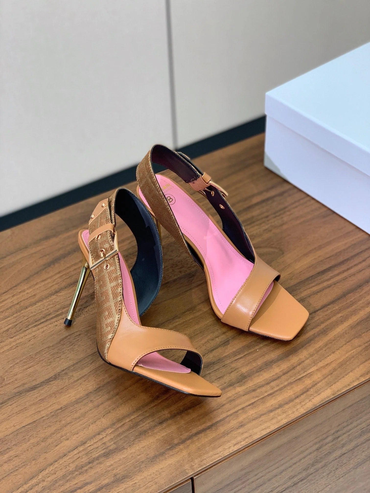BALMAIN 25S JACQUARD KNIT SLINGBACK PUMPS 95MM IN BROWN AND PINK CALFSKIN