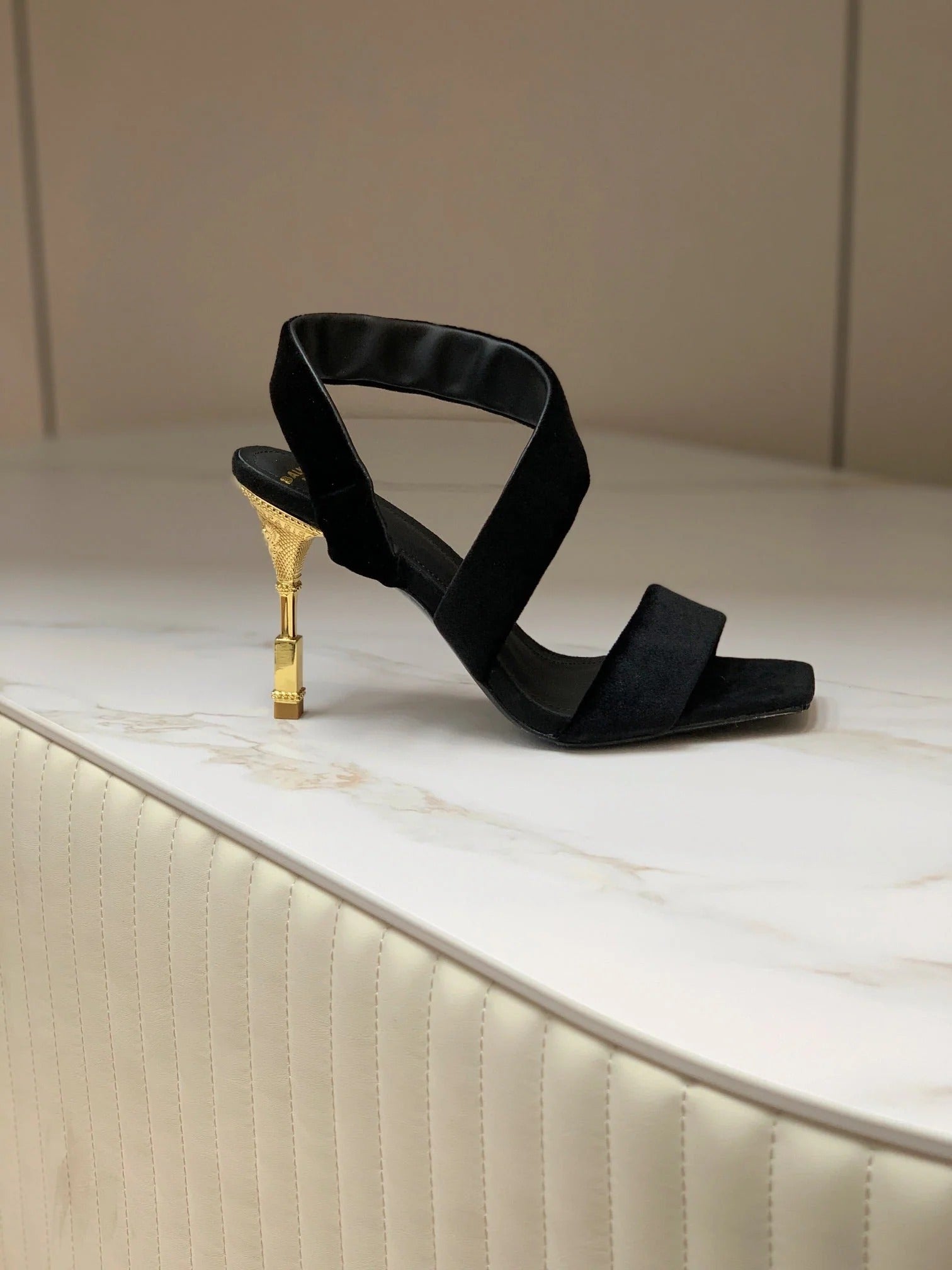 BALMAIN 25S MONETA HEELED SANDALS 95MM IN BLACK VELVET