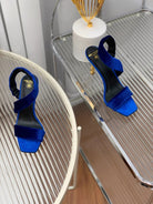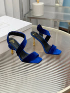 BALMAIN 25S MONETA HEELED SANDALS 95MM IN DARK BLUE VELVET