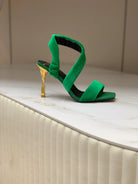 BALMAIN 25S MONETA HEELED SANDALS 95MM IN DARK GREEN VELVET