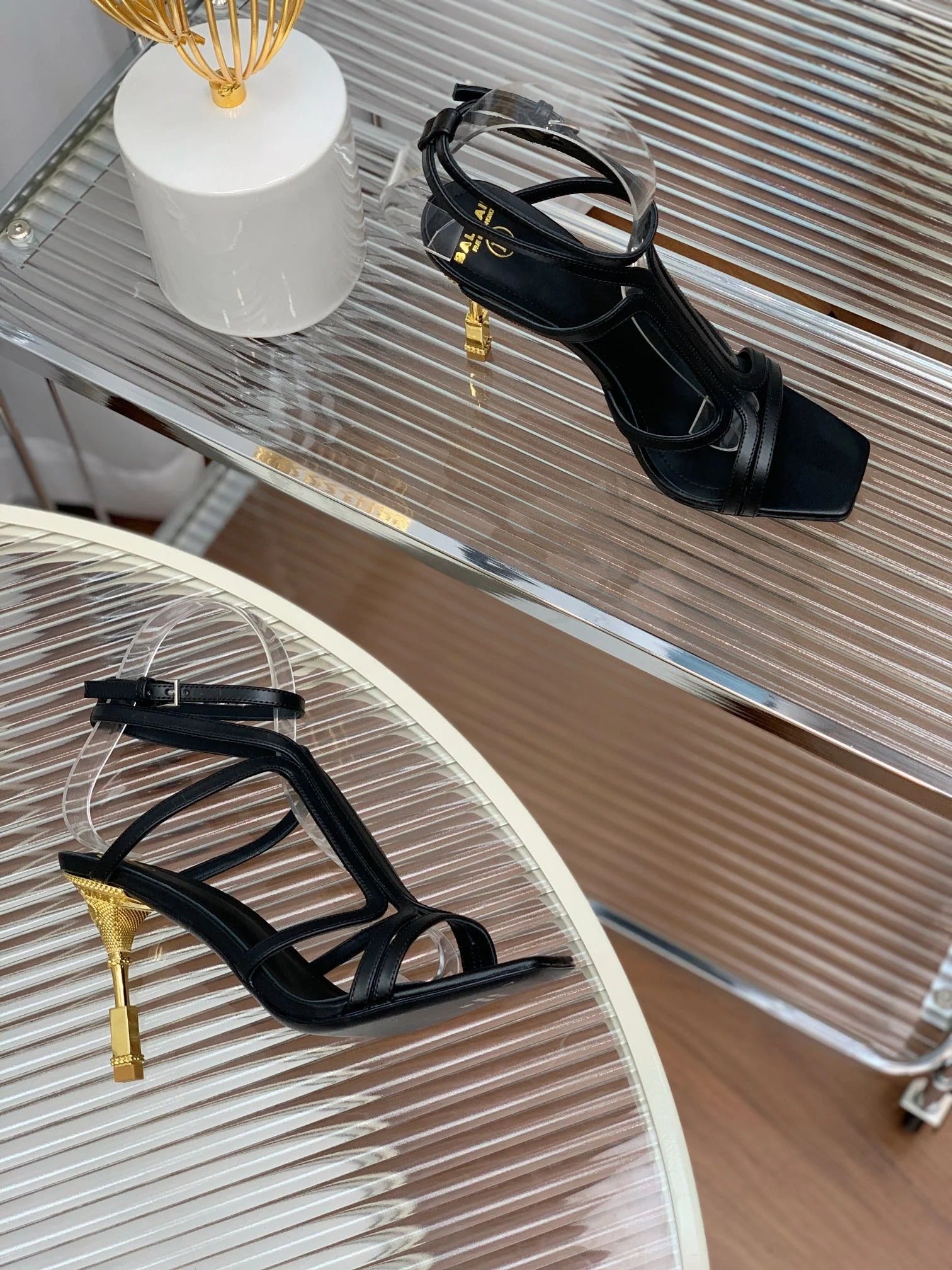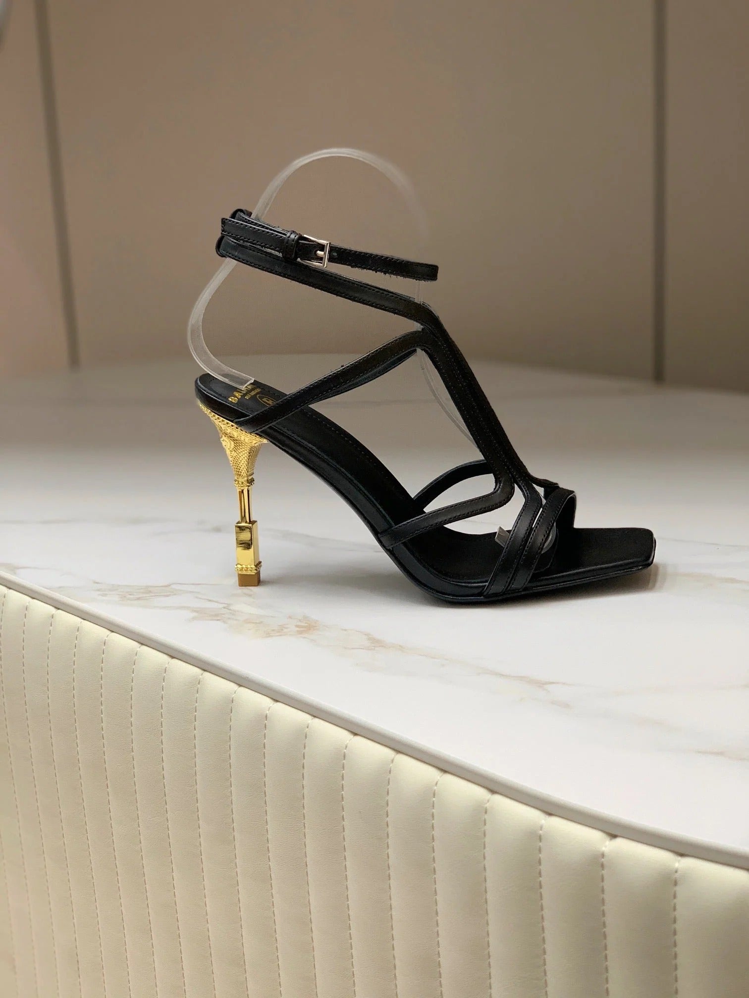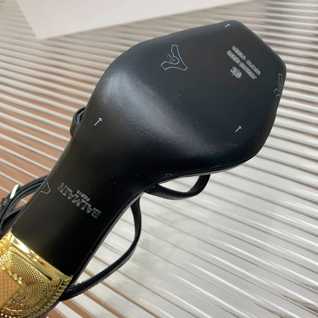 BALMAIN 25S MONETA SANDAL 95MM IN BLACK CALFSKIN