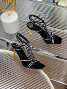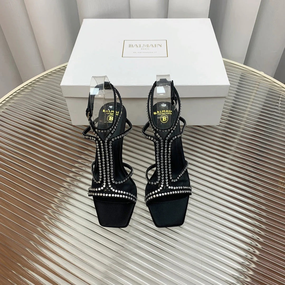 BALMAIN 25S MONETA SANDAL 95MM IN BLACK CALFSKIN WITH CRYSTAL