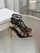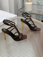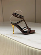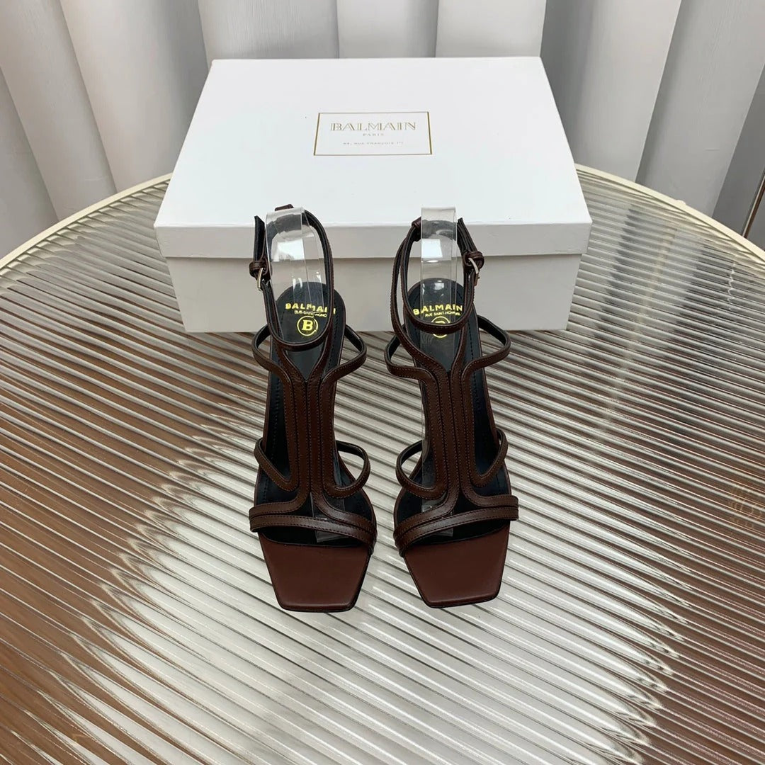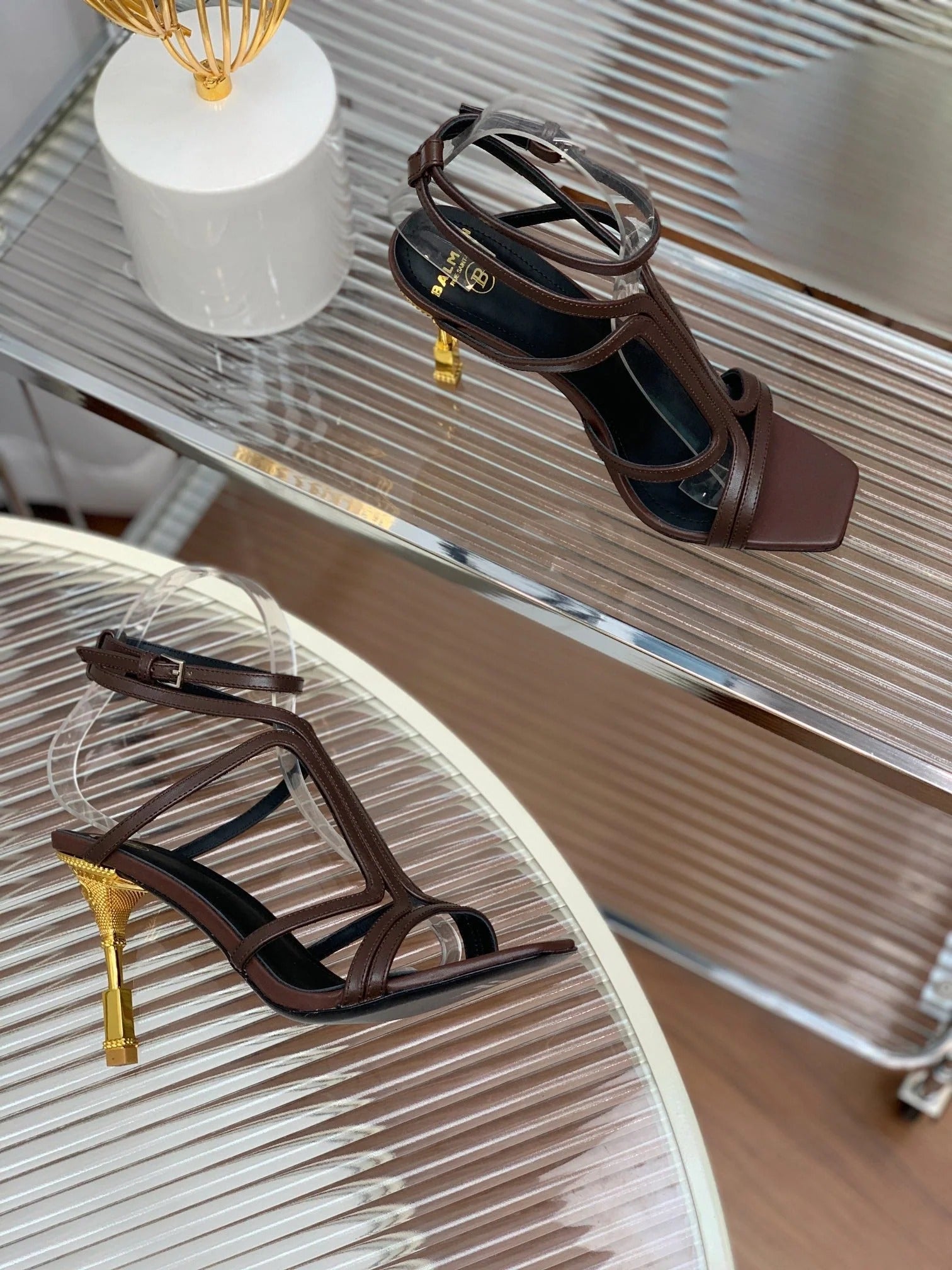 BALMAIN 25S MONETA SANDAL 95MM IN DARK BROWN CALFSKIN