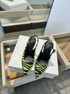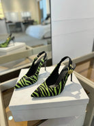 BALMAIN 25S SLINGBACK EVA 95MM IN GREEN AND BLACK ZEBRA PRINT CALFSKIN