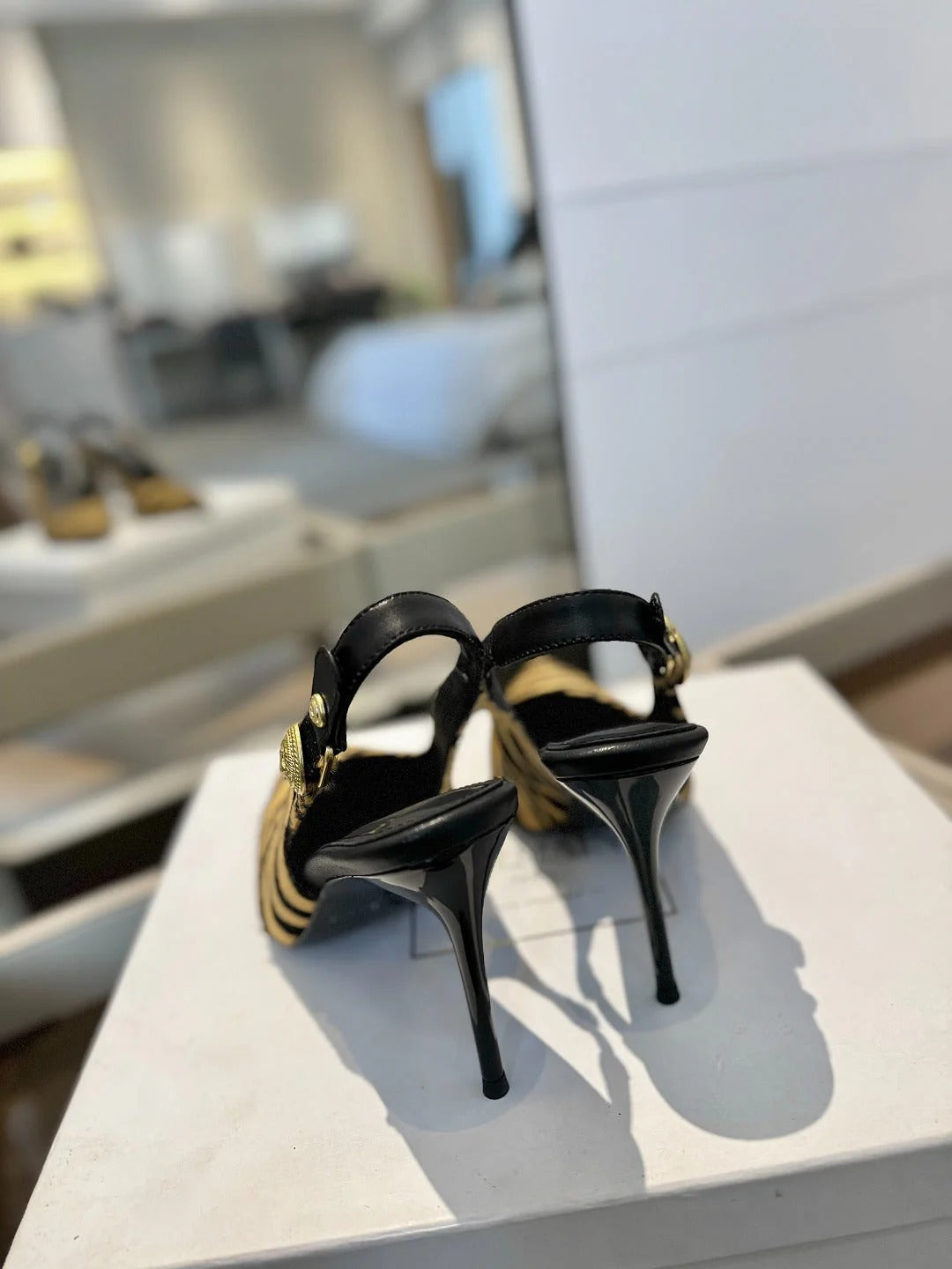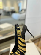 BALMAIN 25S SLINGBACK EVA 95MM IN YELLOW AND BLACK ZEBRA PRINT CALFSKIN