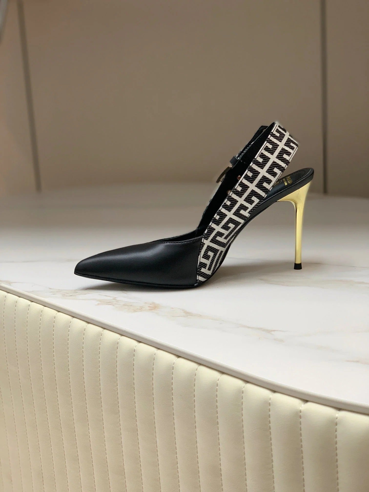 BALMAIN 25S SLINGBACK SHOES 95MM IN BLACK CALFSKIN