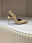 BALMAIN 25S SLINGBACK SHOES 95MM IN LIGHT BROWN CALFSKIN