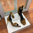 BALMAIN 25S THIN STRAP HIGH HEELS 105MM IN DARK BROWN SUEDE GOLD HARDWARE