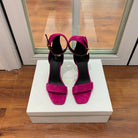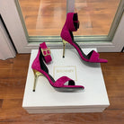 BALMAIN 25S THIN STRAP HIGH HEELS 105MM IN FUCHSIA SUEDE GOLD HARDWARE