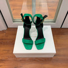 BALMAIN 25S THIN STRAP HIGH HEELS 105MM IN GREEN SUEDE GOLD HARDWARE