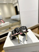RUBY SANDALS IN BLACK CALFSKIN AND PB LABYRINTH CANVAS