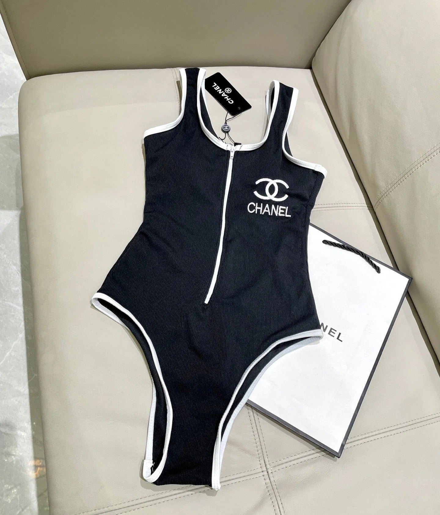 CC BIKINI SWIMSUIT SET IN BLACK AND WHITE TRIM 604255