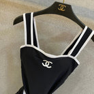 CC BIKINI SWIMSUIT SET IN BLACK AND WHITE TRIM WHITE WAIST TIE DETAIL 613721