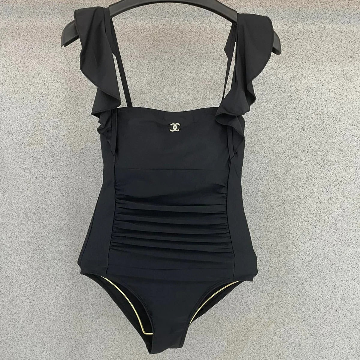 CC BIKINI SWIMSUIT SET IN BLACK ATTACHED WITH GOLD METAL LOGO 615196