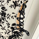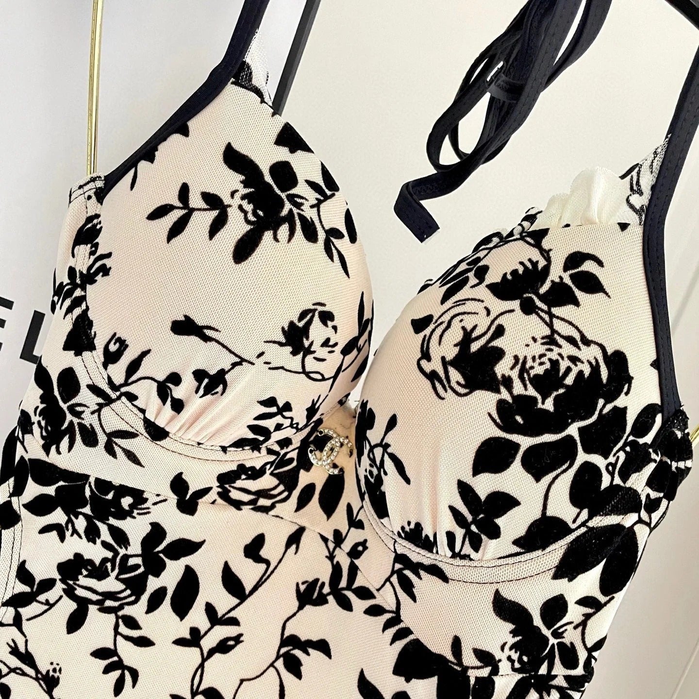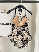 CC BIKINI SWIMSUIT SET IN IVORY MESH WITH BLACK VELVET FLORAL EMBROIDERY 622181