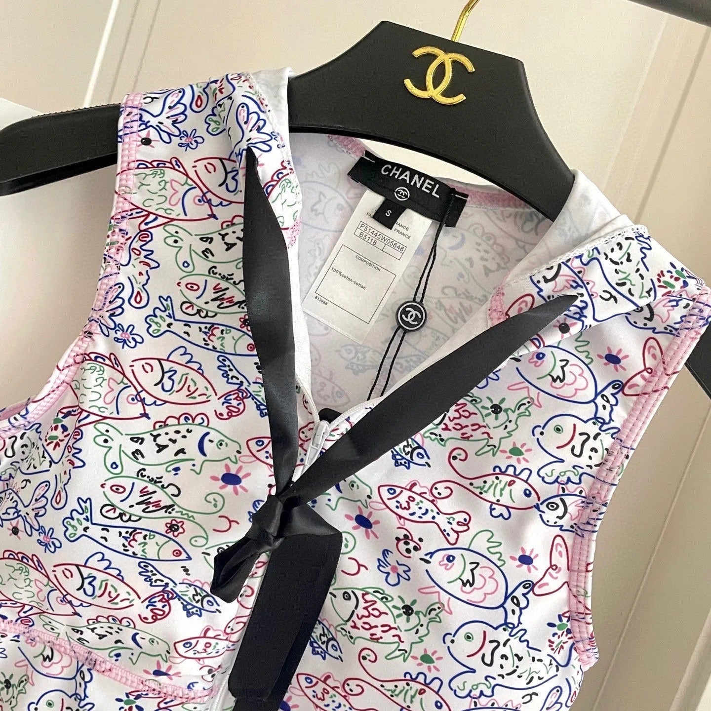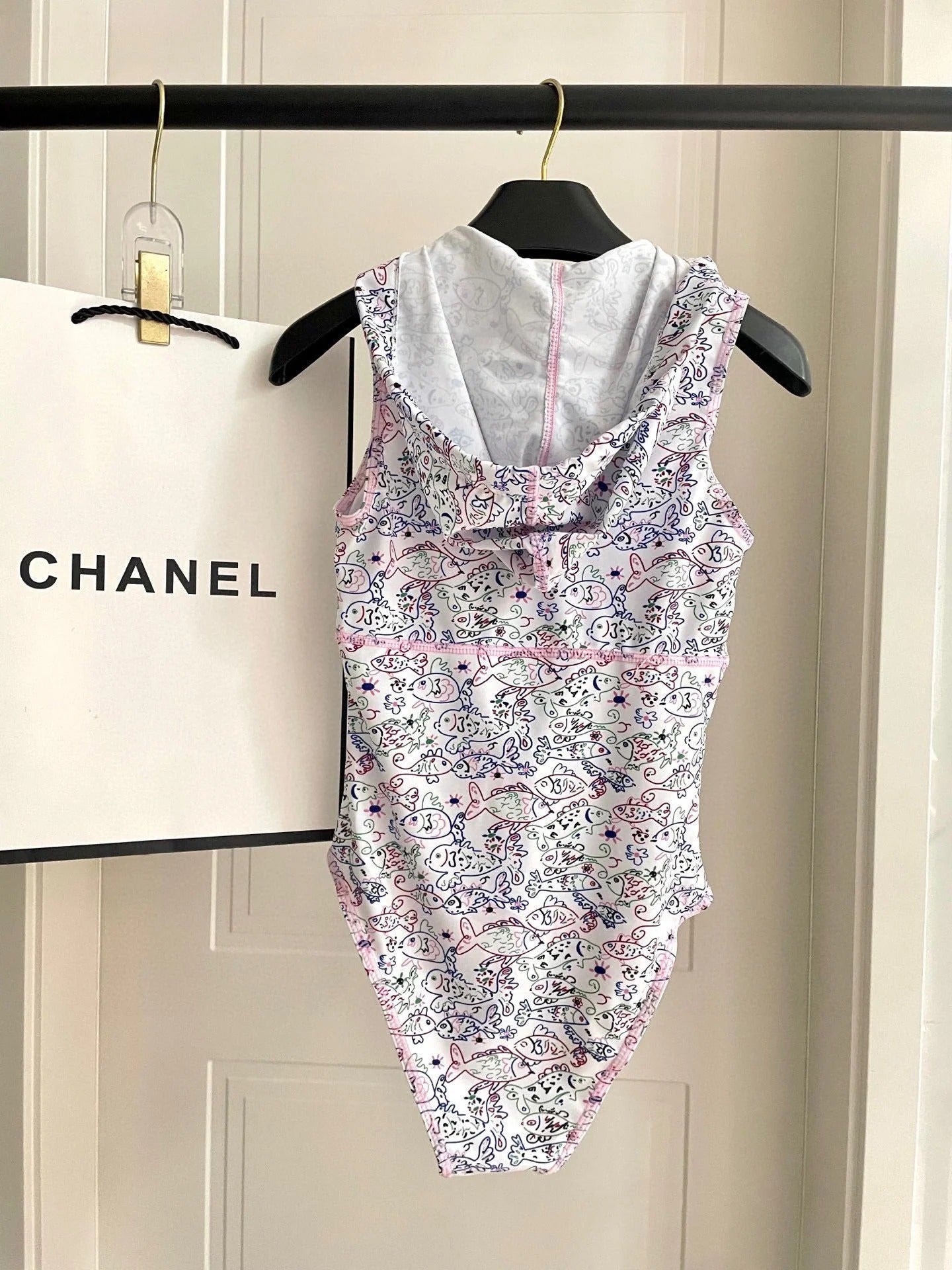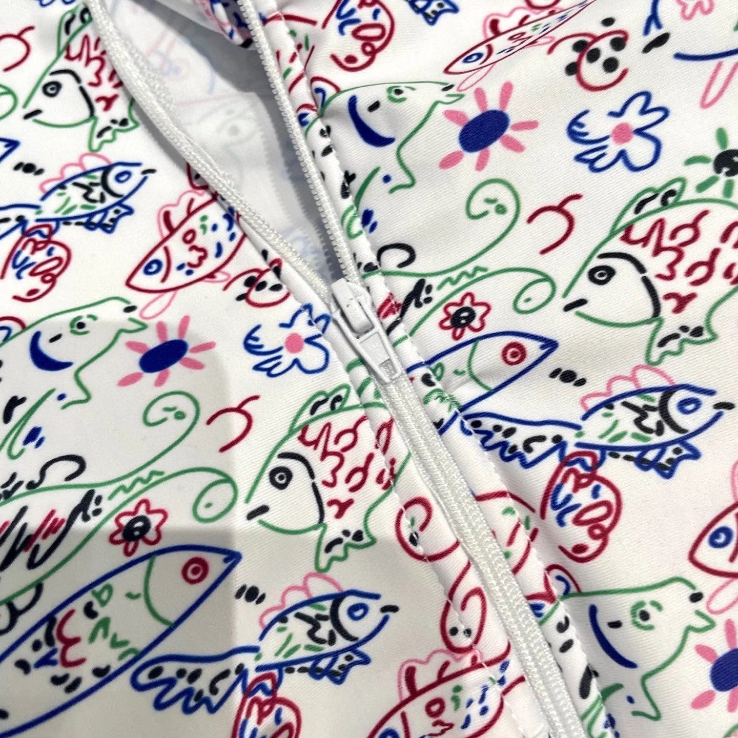 CC BIKINI SWIMSUIT SET IN WHITE AND FISH COLORFUL PRINTED 604253