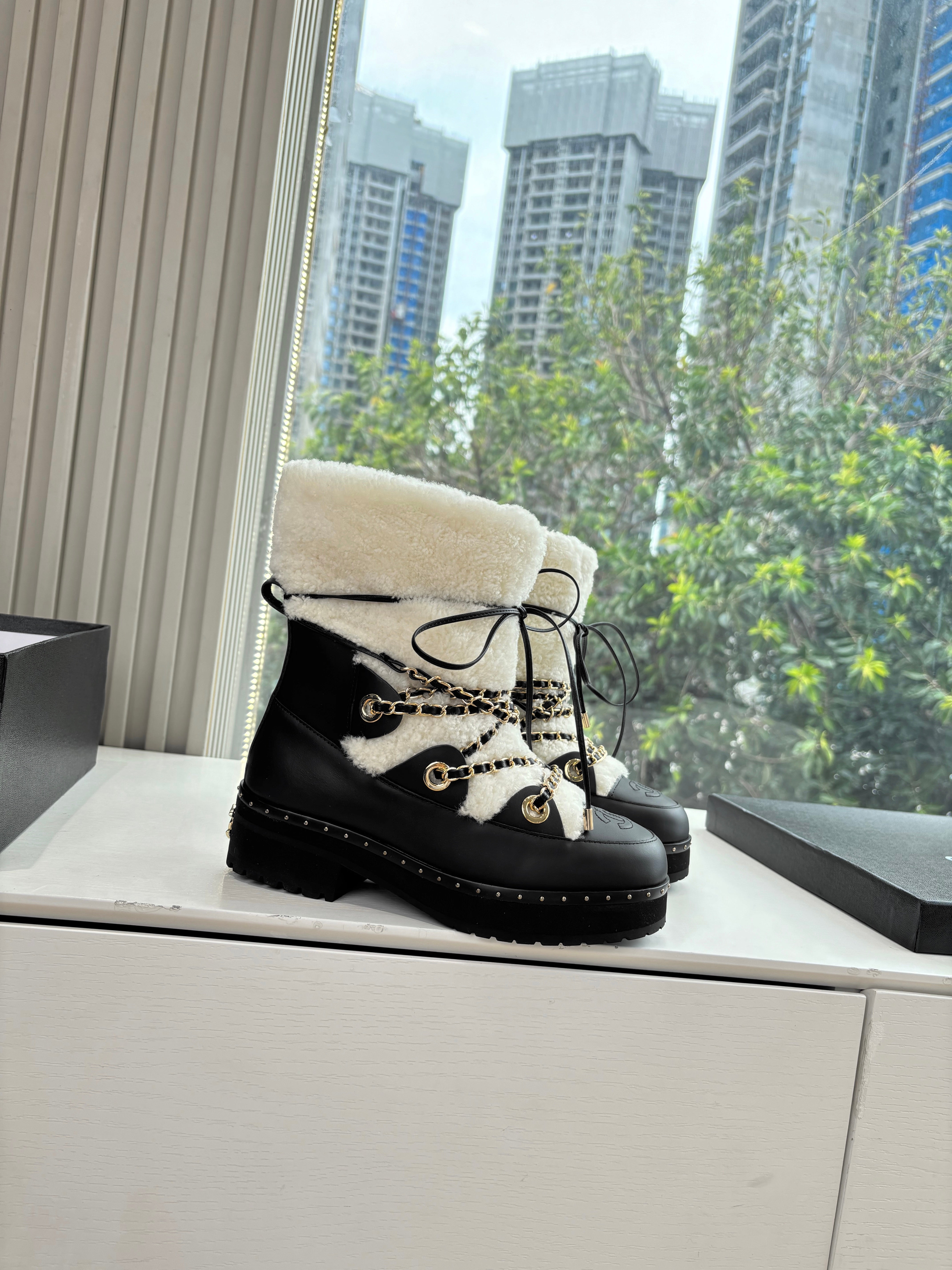 CC 2025 Short Boot White Black Cowhide Wool 548841