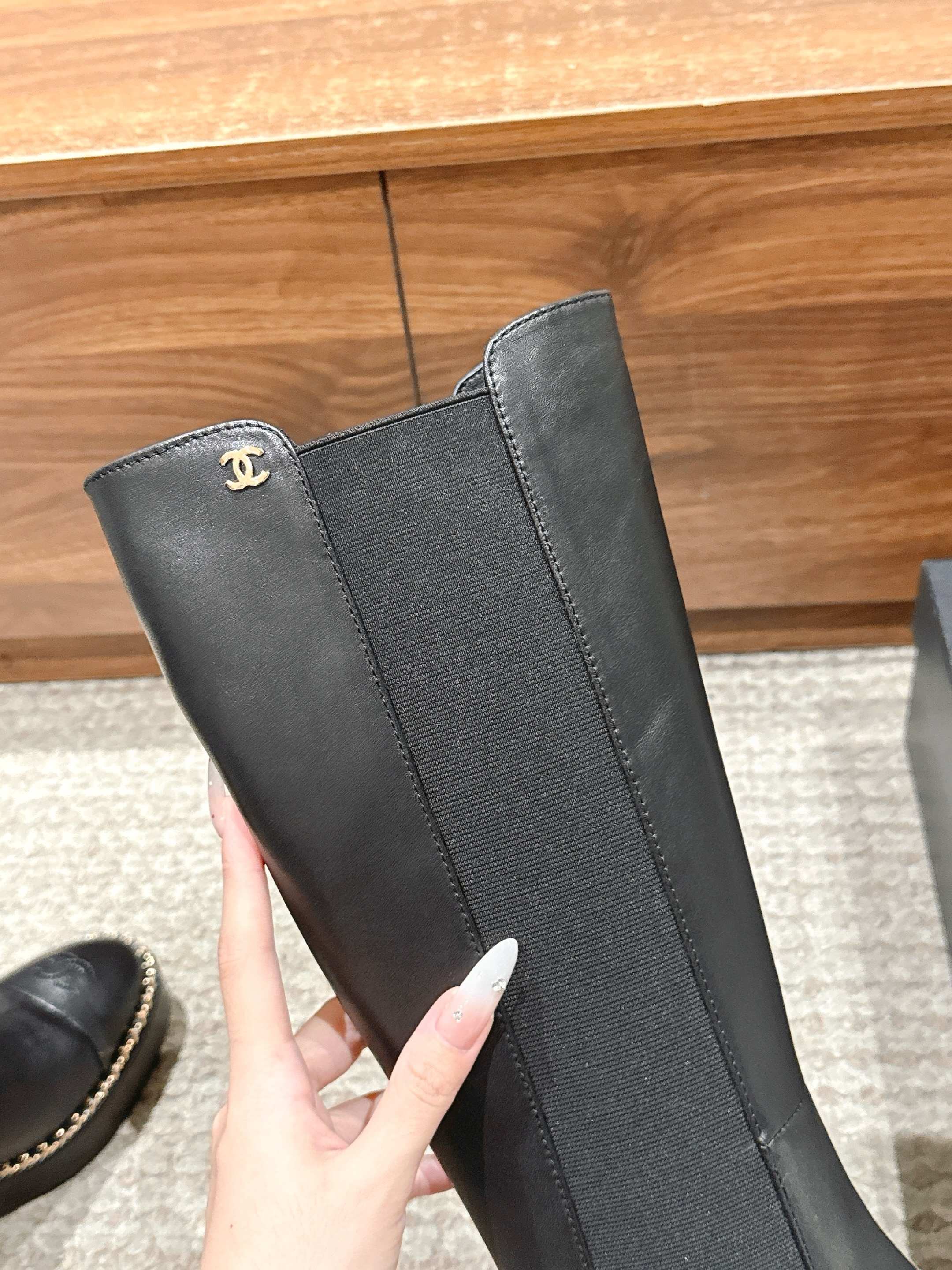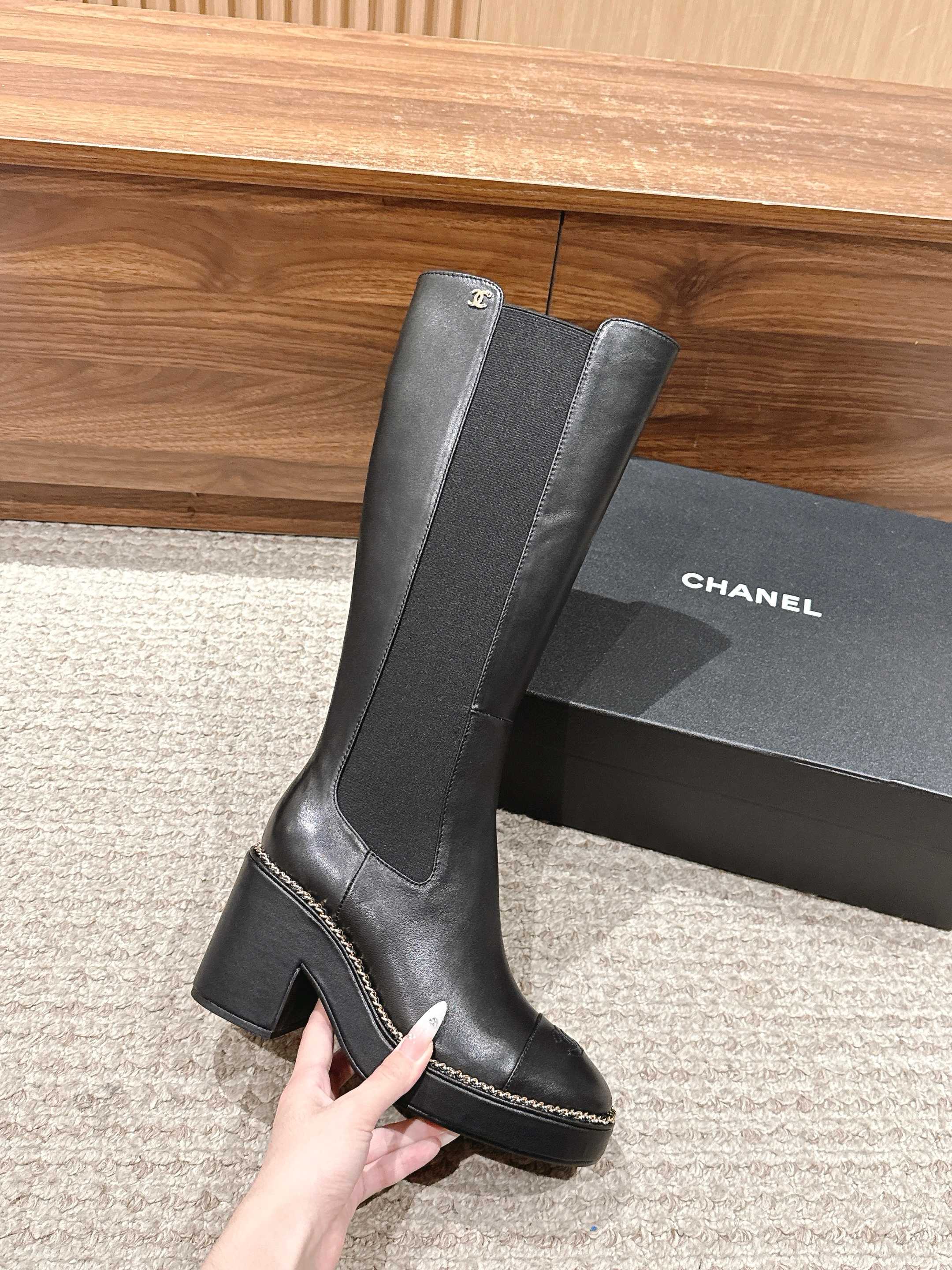 CC 25 Chelsea High Boots With Chain 85mm Black Calfskin 428221