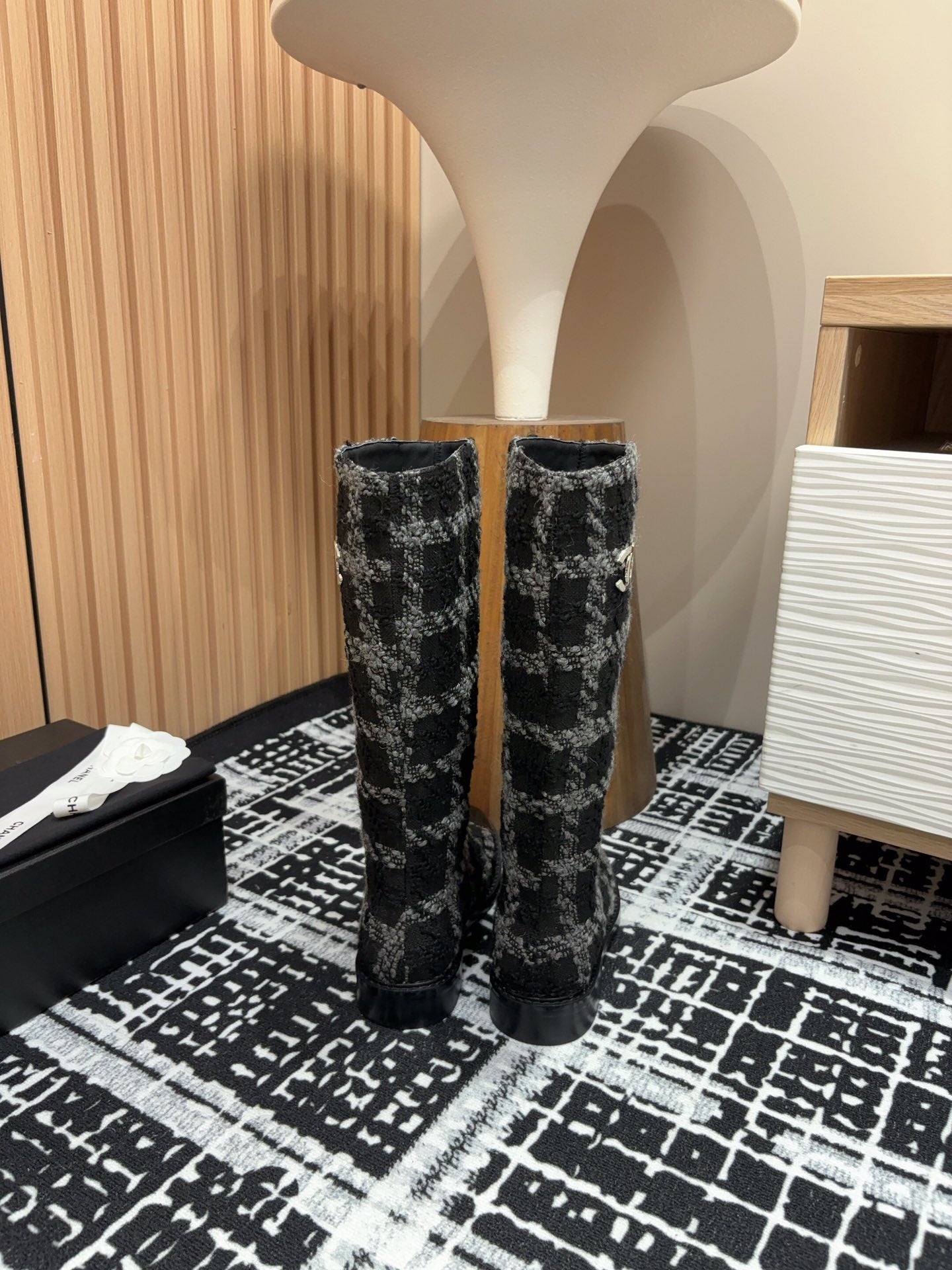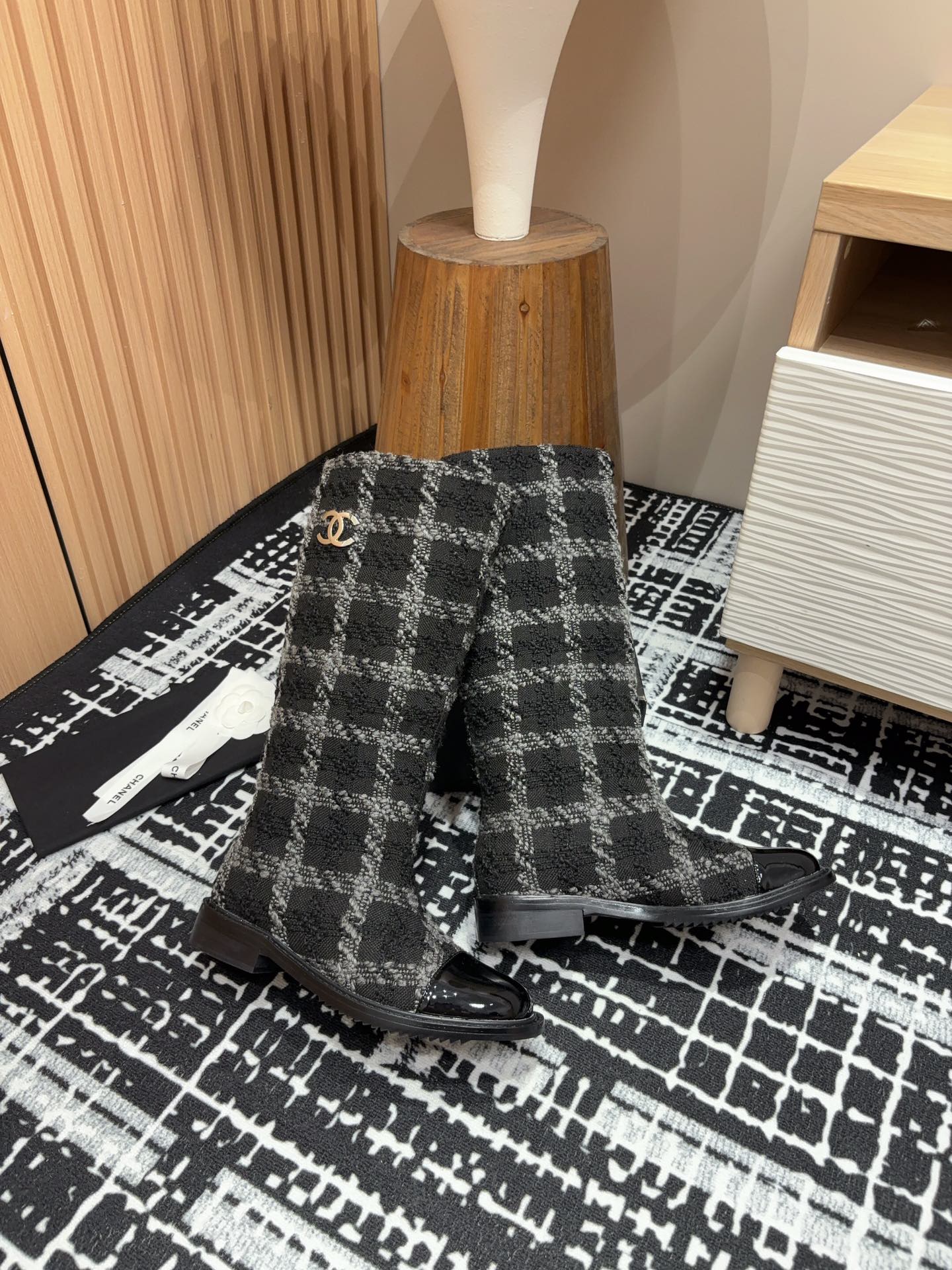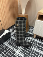 CC High Boots In Black Wool Tweed And Lambskin Gold Hardware