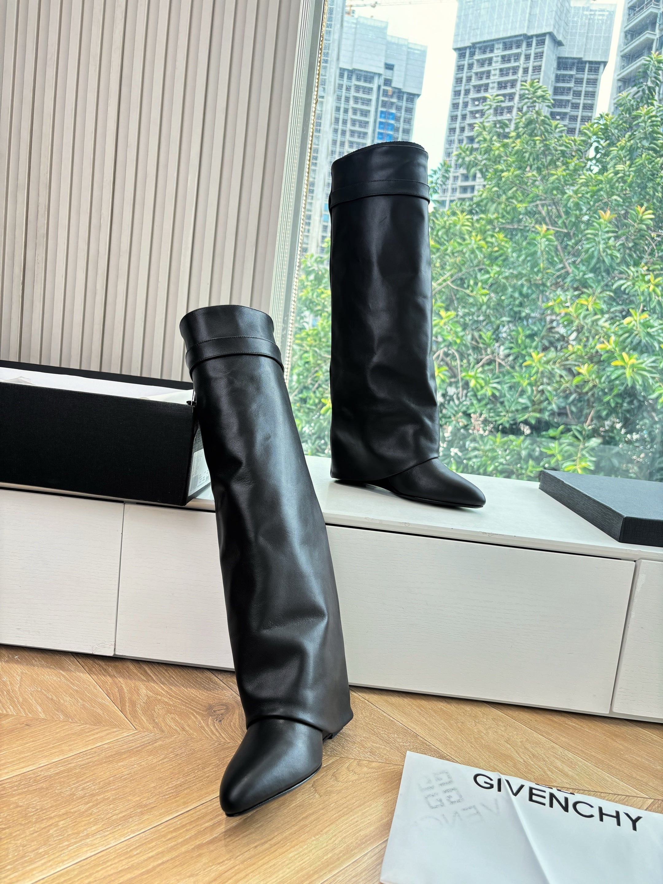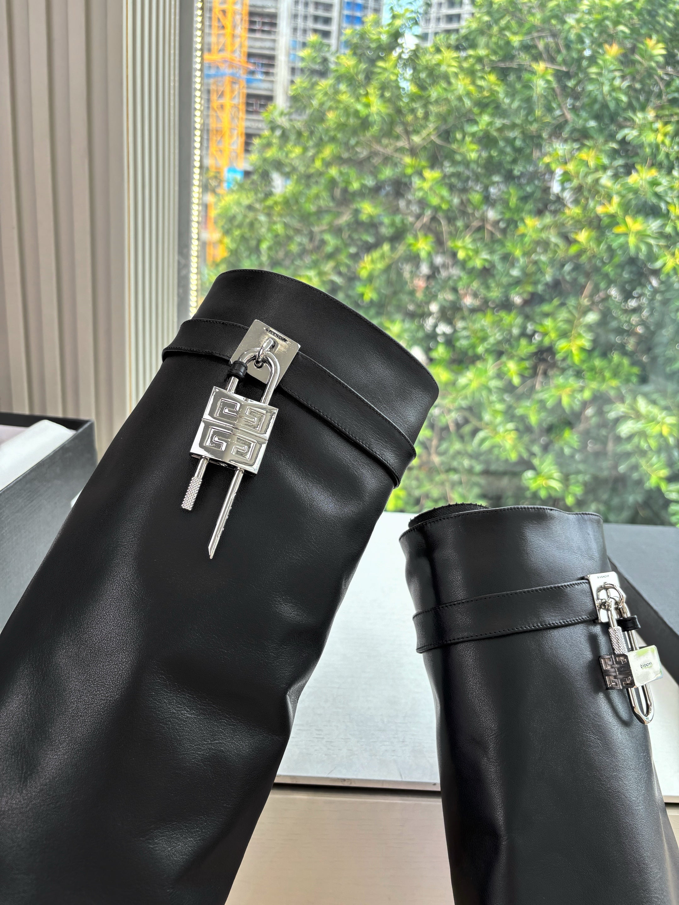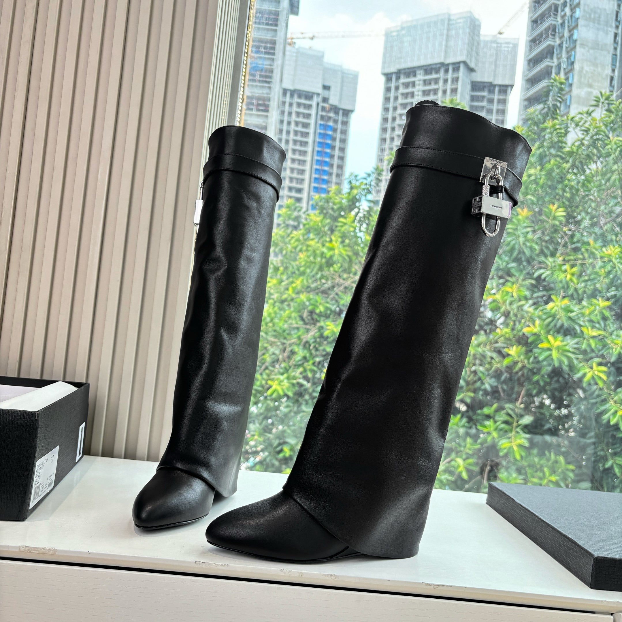 Givenchy FW25 Shark-Lock Knee-High Boots Black Cowhide Sliver HW 507189