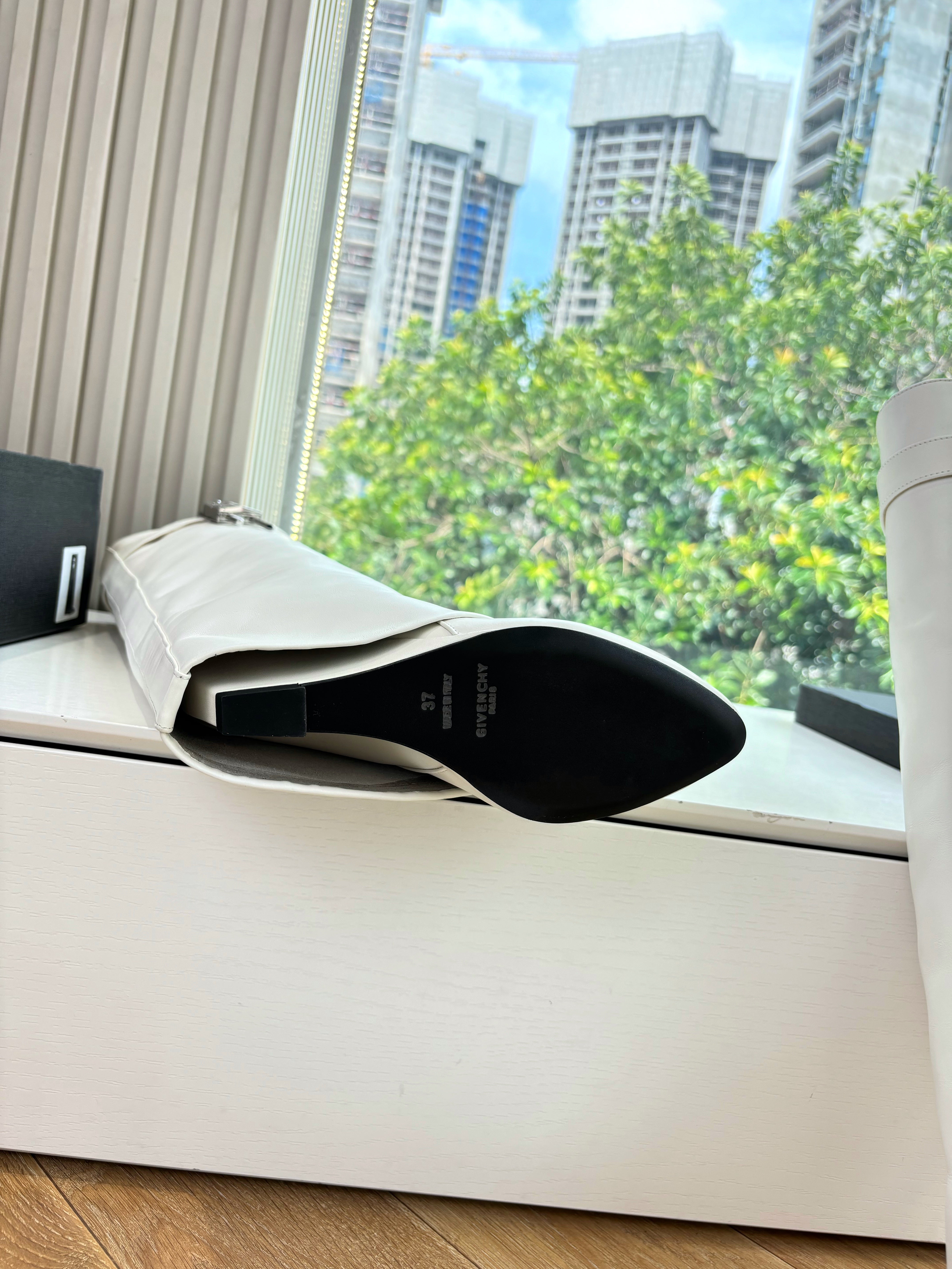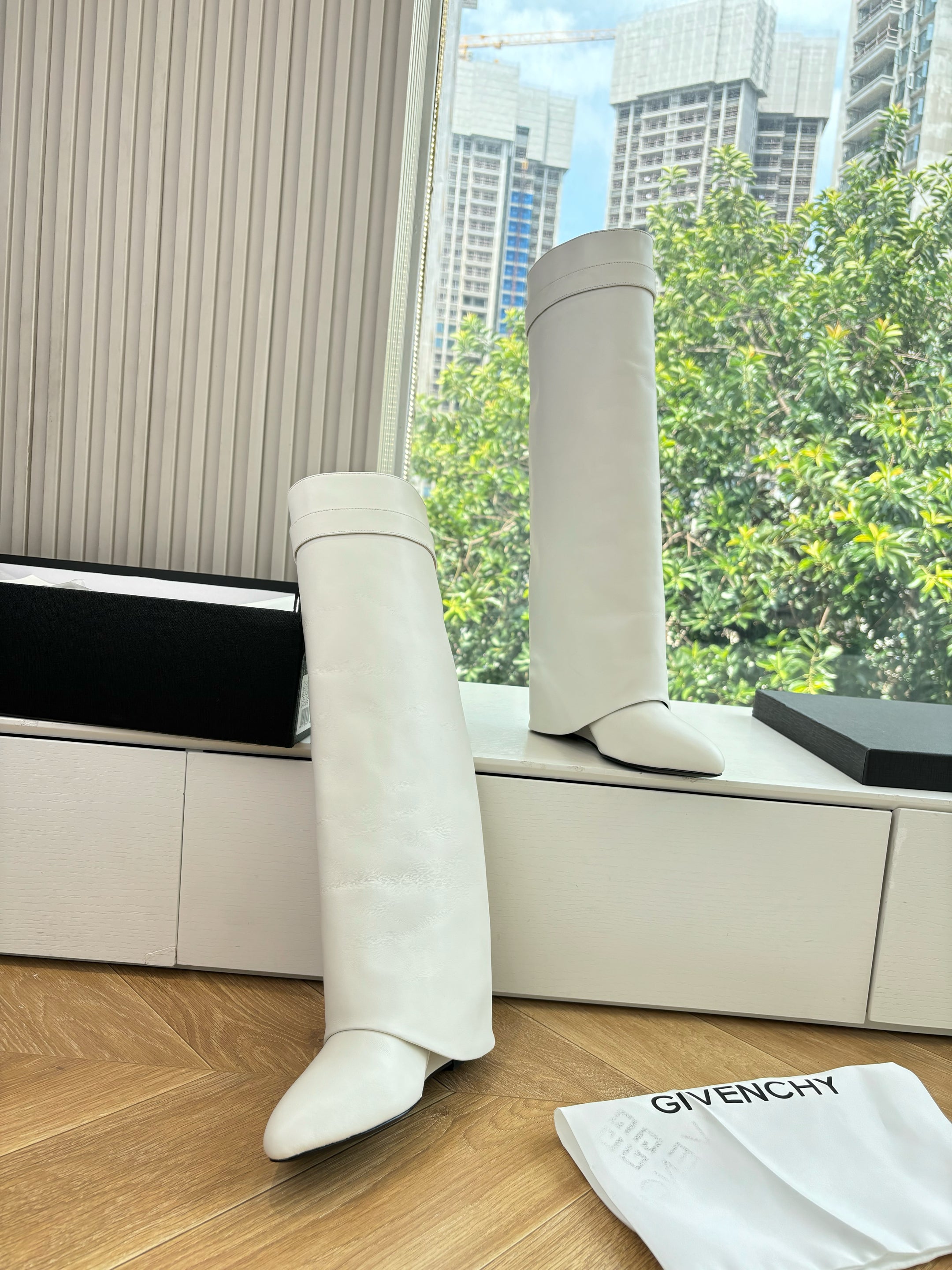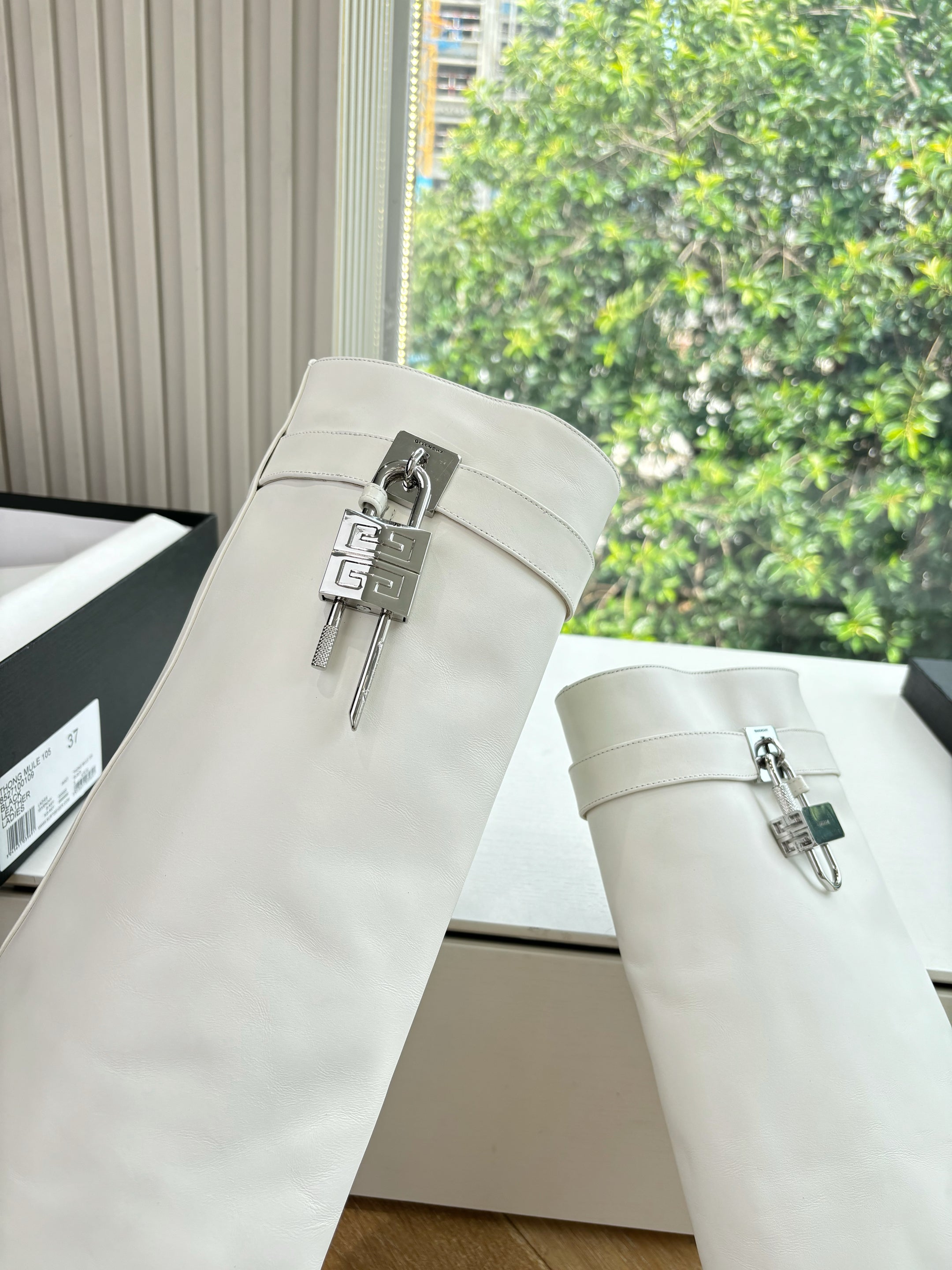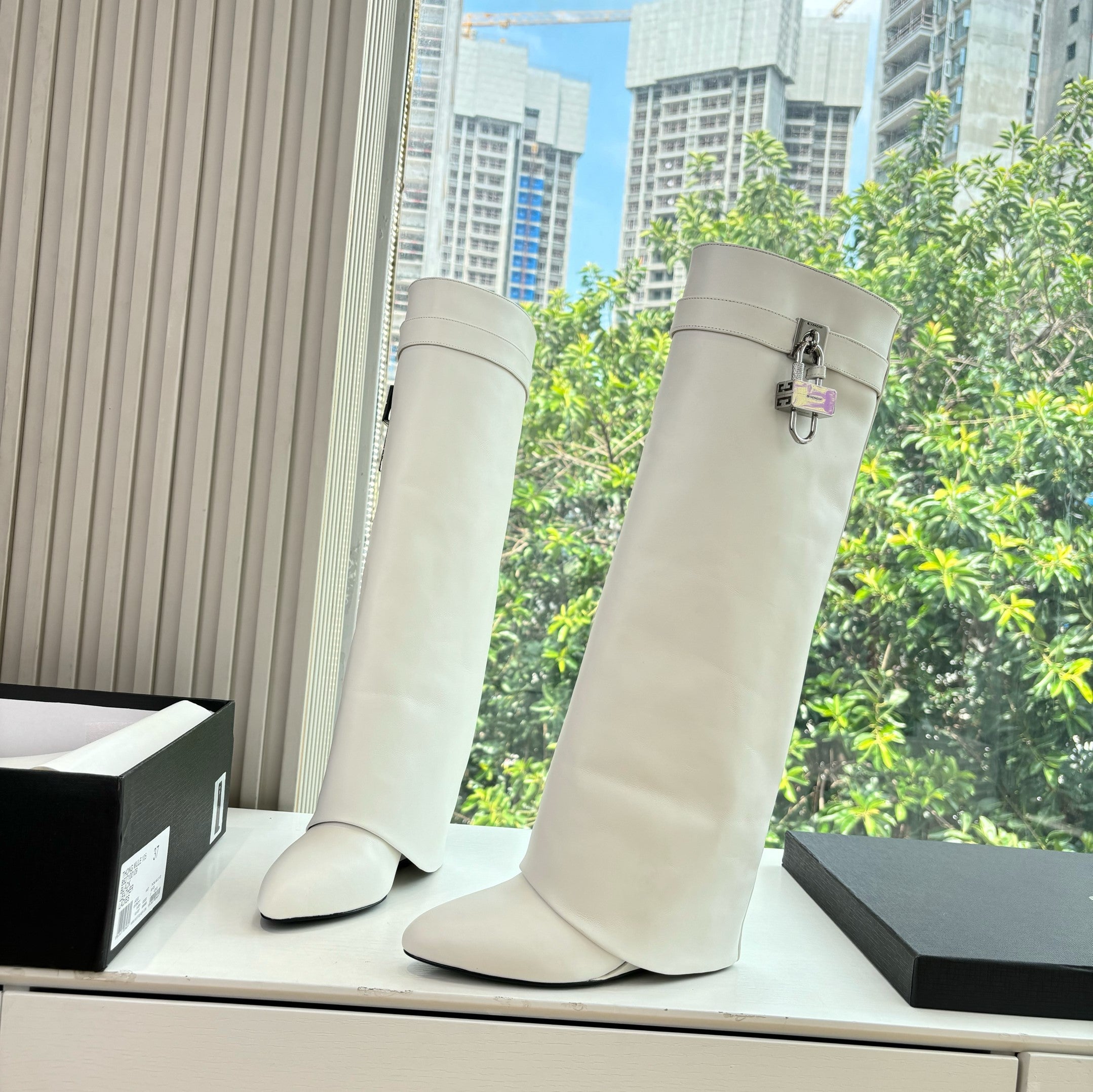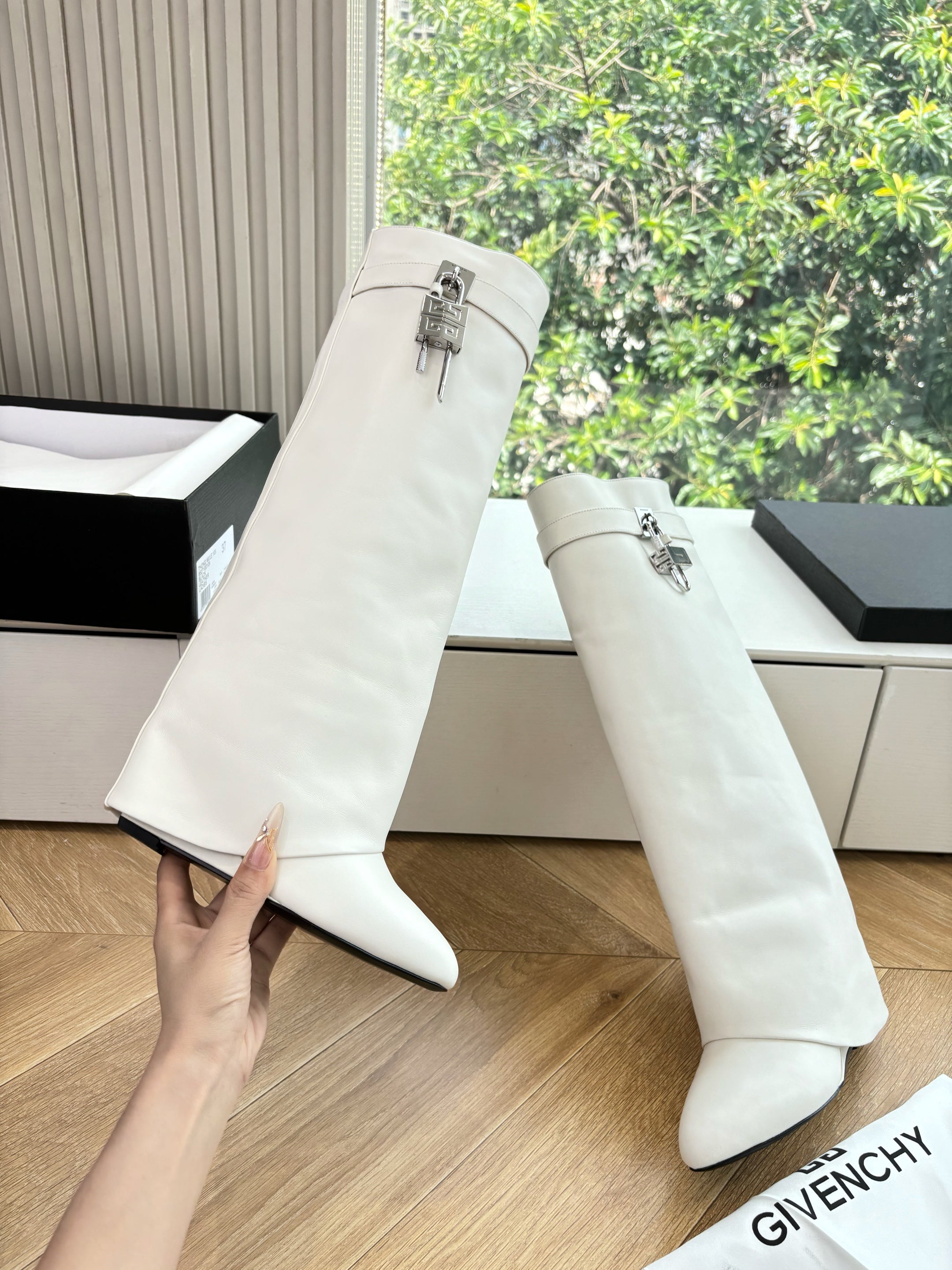 Givenchy FW25 Shark-Lock Knee-High Boots White Cowhide Sliver HW 507188