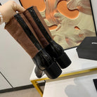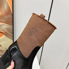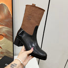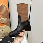 HIGH BOOTS 5.5 CM IN BLACK LAMBSKIN AND CHOCOLATE BROWN FABRIC