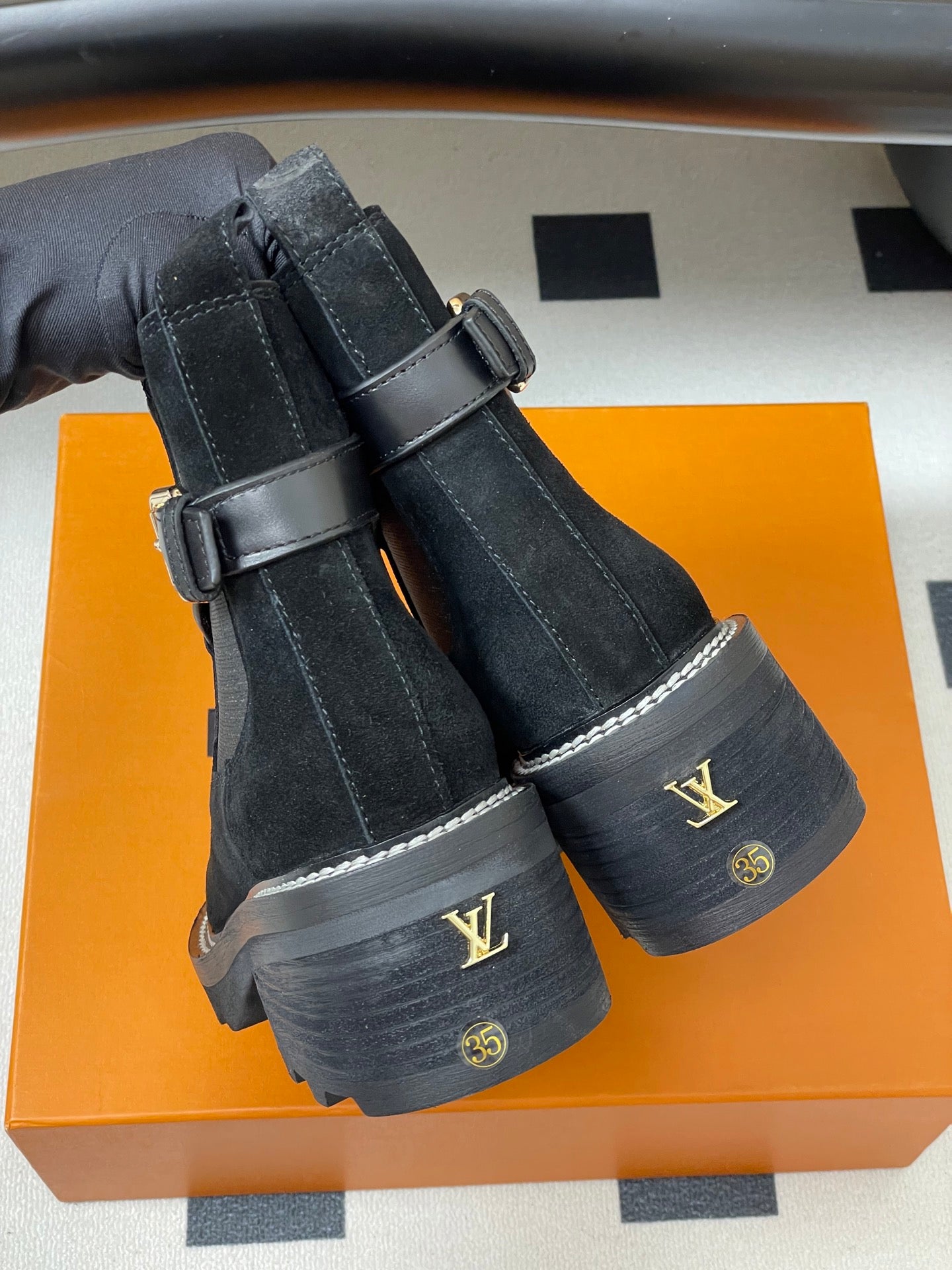 LV Triangle Logo Beaubourg Ankle Boots 40mm Black Suede & Rubber 423368