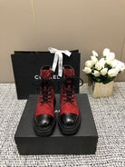 SHORT BOOTS GARNET RED MIX BLACK SUEDE LAMBSKIN