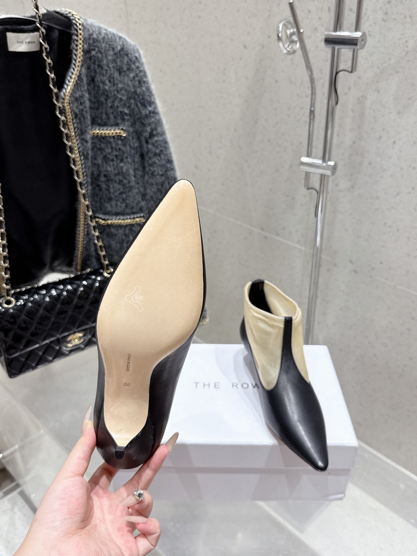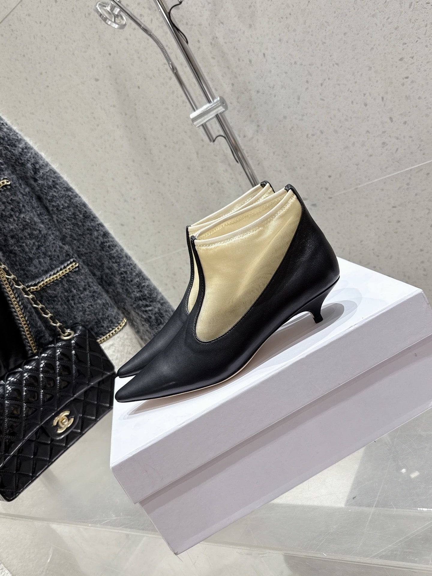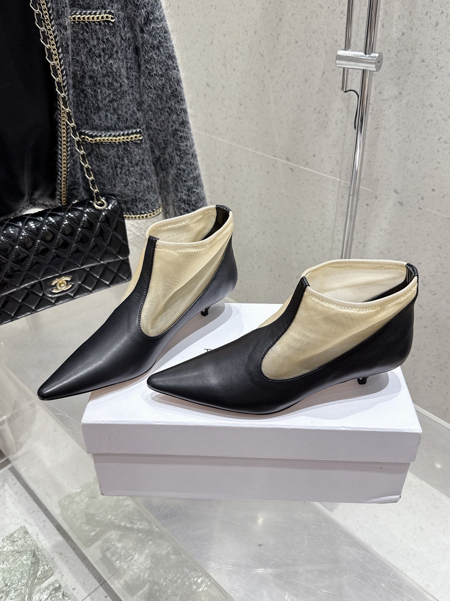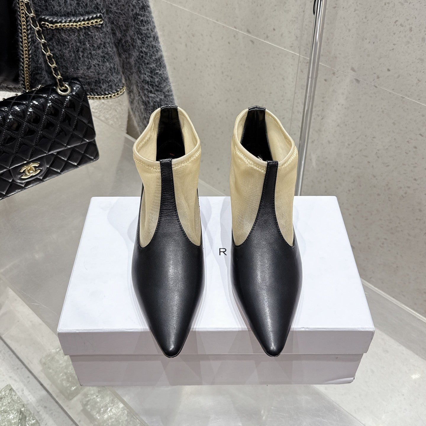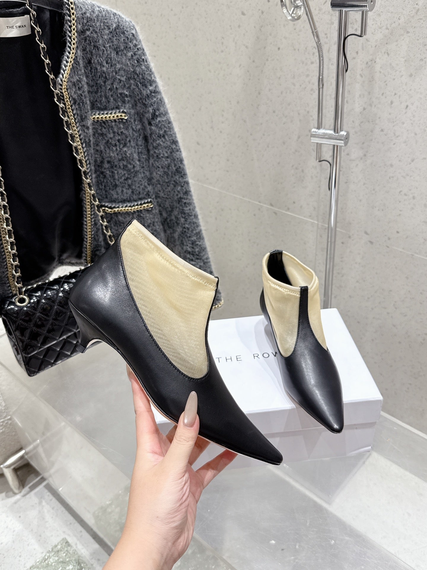 The Row Bootie 3.5cm Beige Mesh And Black Calfskin 338384