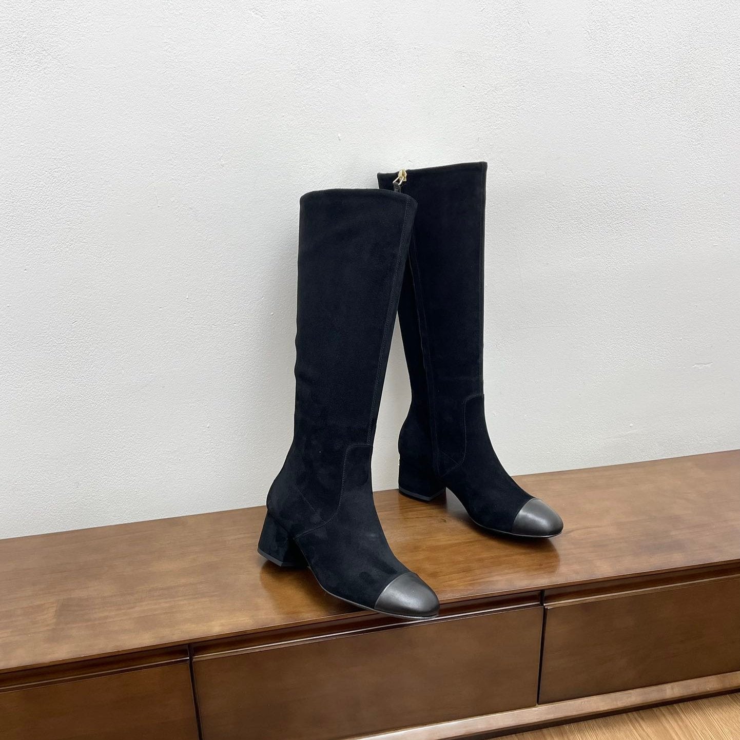 Chanel 25A Winter New Thigh Boots Black Cowhide Mix Suede 393520