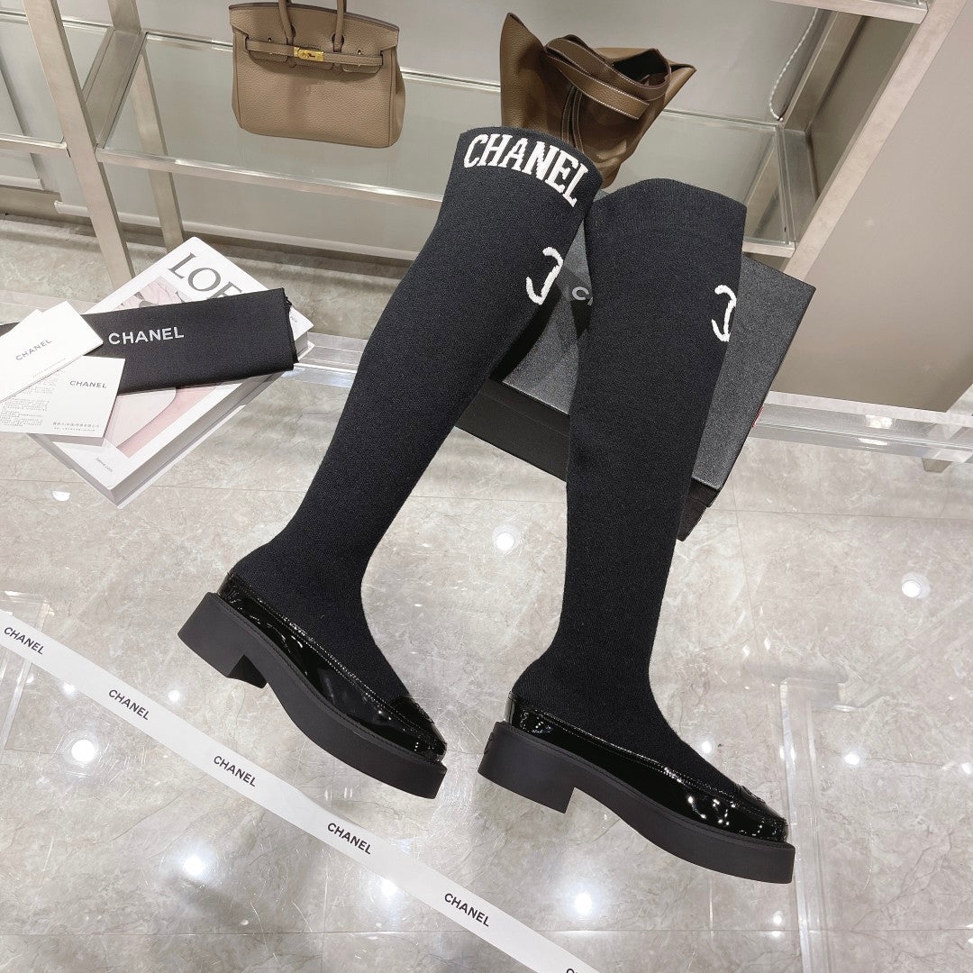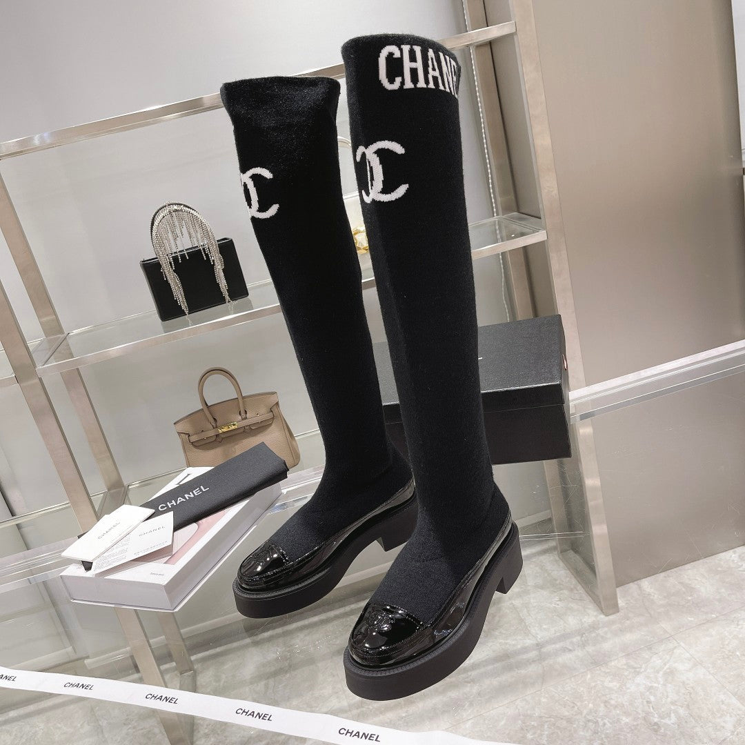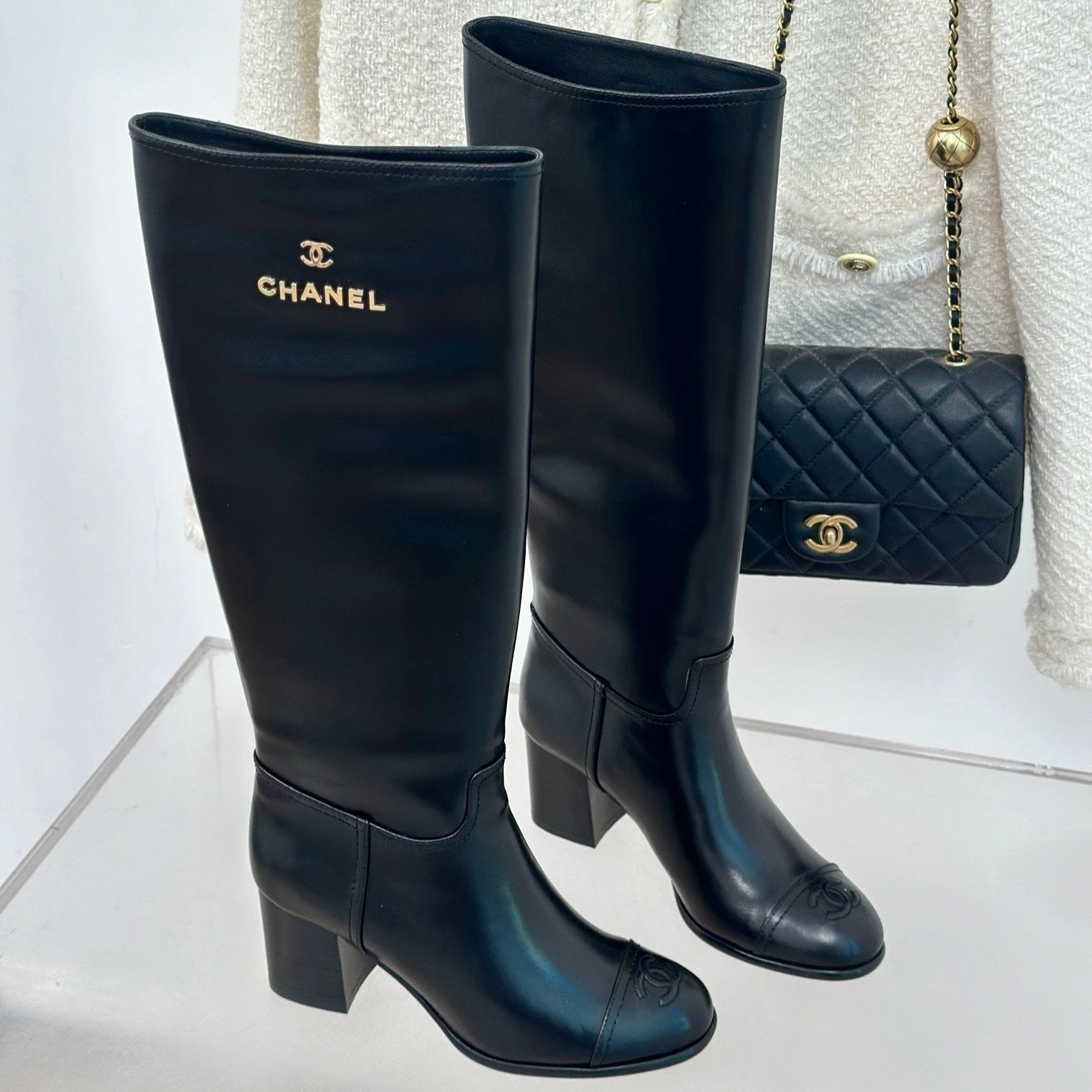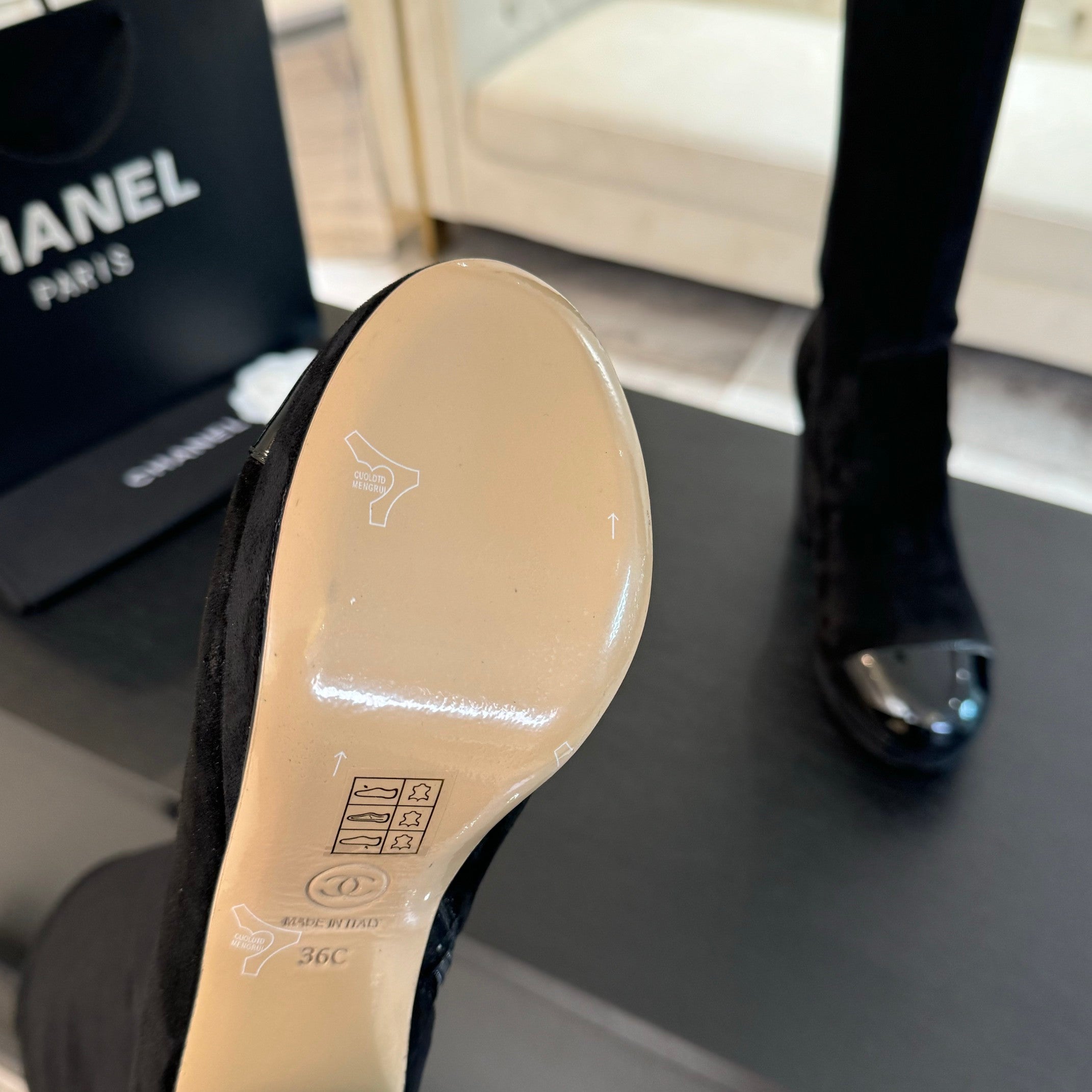 CC High Boots 45mm Glossy Black Calfskin And Suede