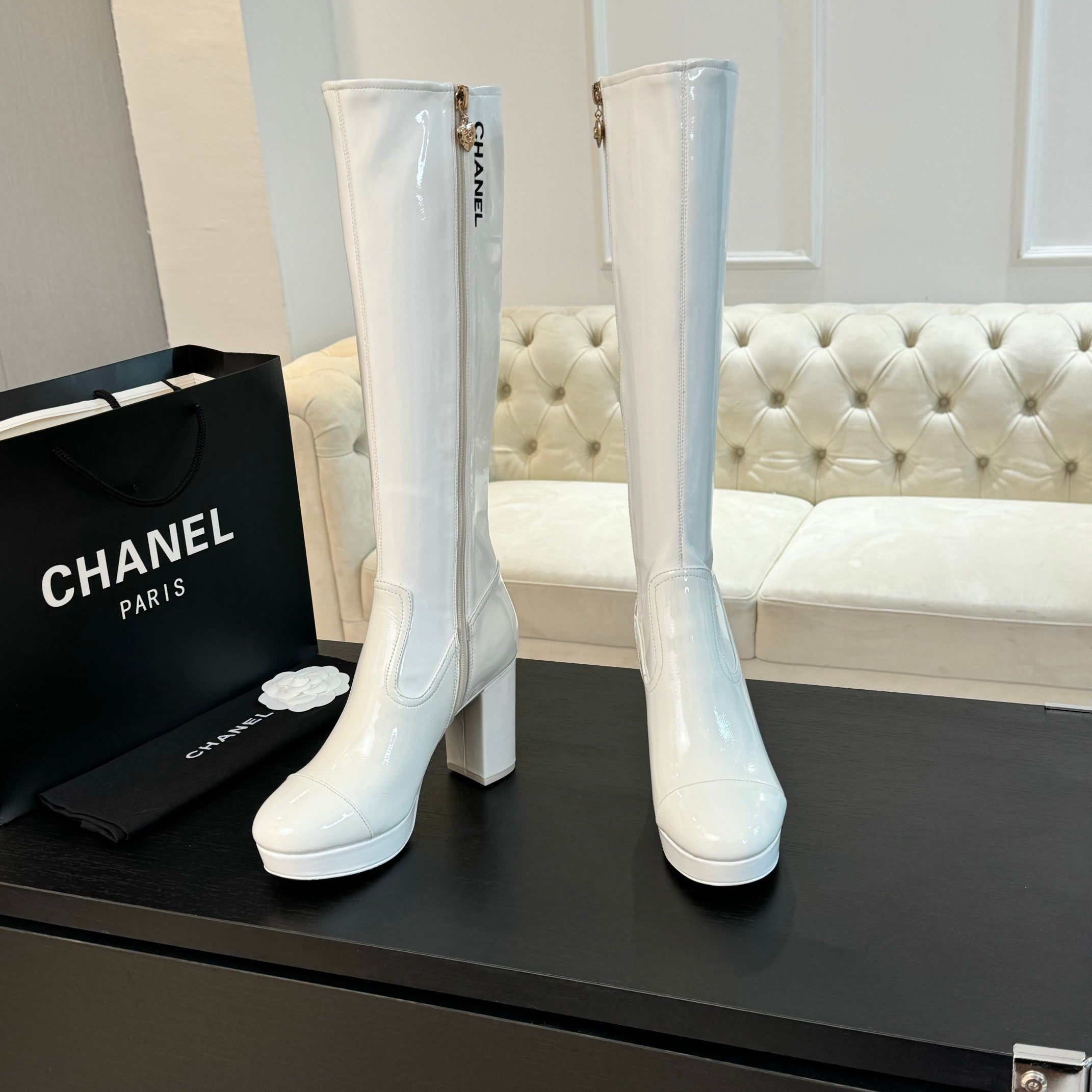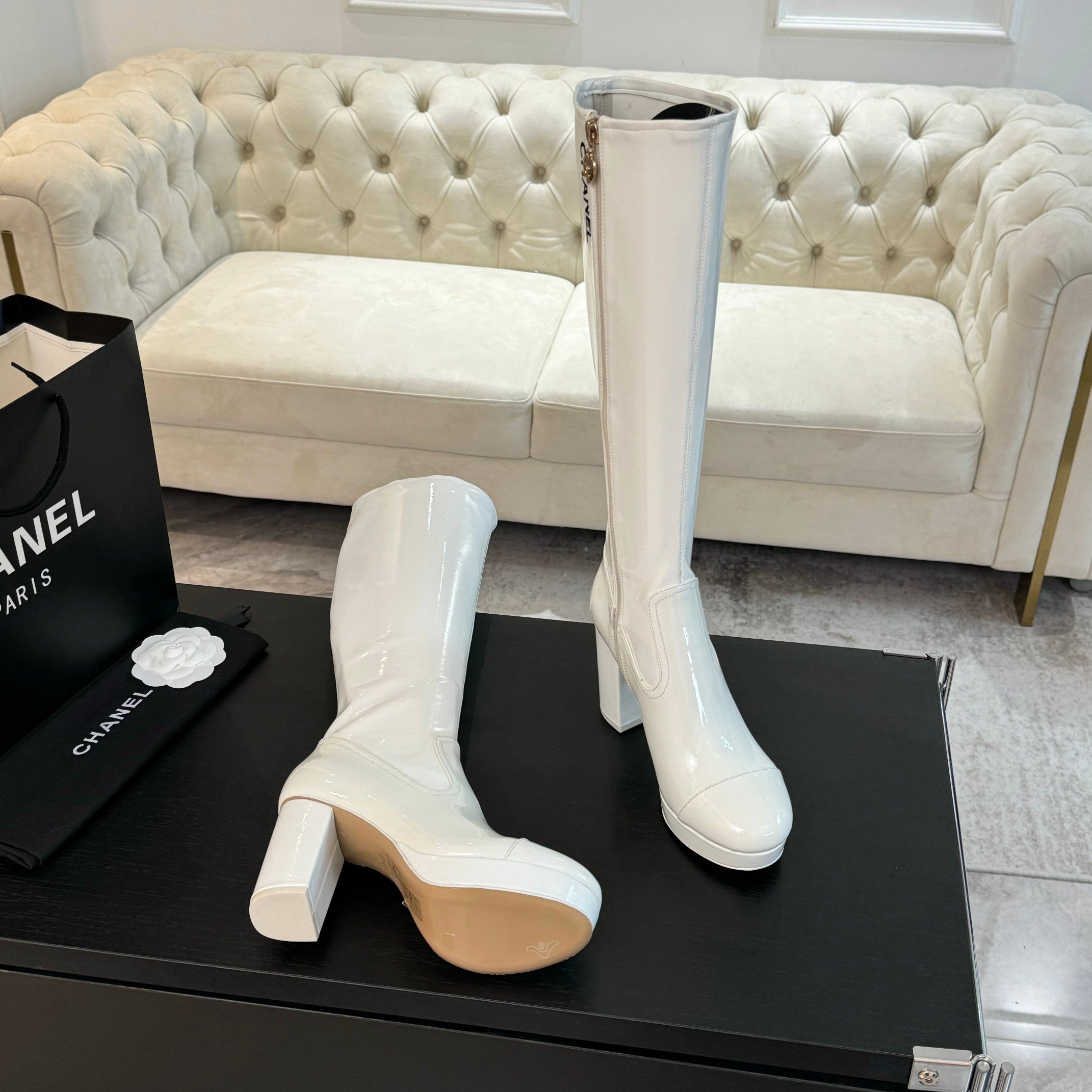 CC High Boots 60mm White Quilted Lambskin And Cowhide
