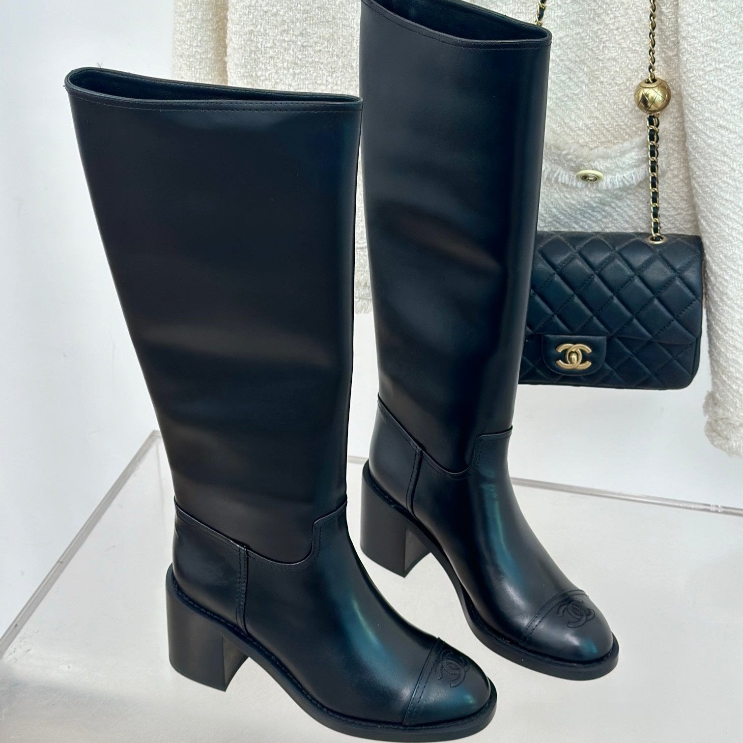 CC High Boots 45mm Plain Black Calfskin And Suede