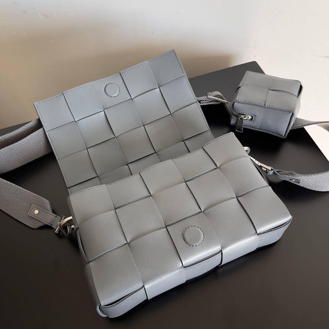 BV Two-In-One Cassette Bag 26cm Grey Leather