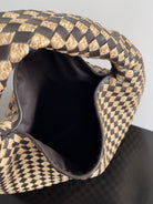 BV Large Hop 54 Chocolate Cowhide Mix Beige Raffia 209070