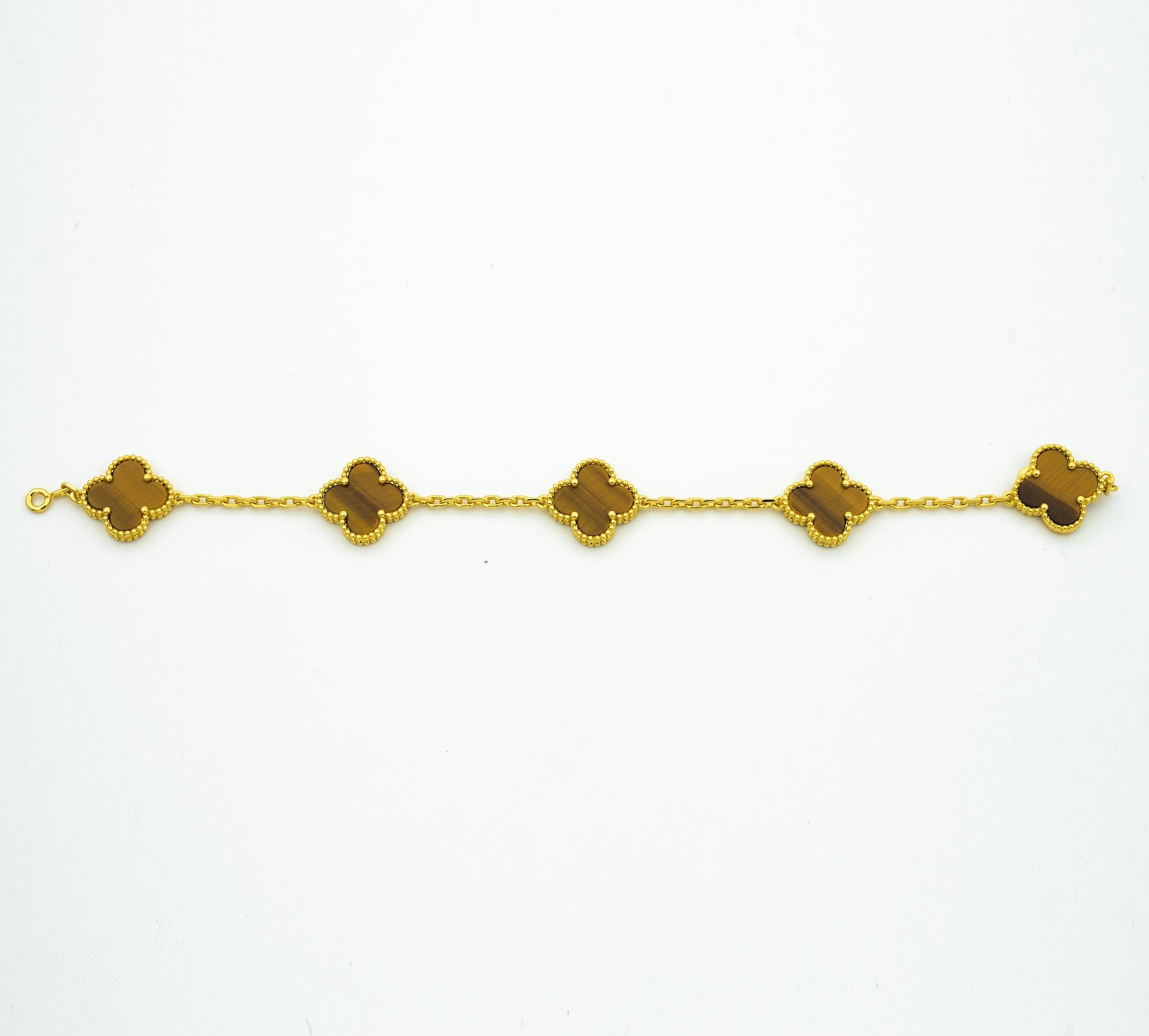CLOVER BRACELET 5 MOTIFS TIGER EYE