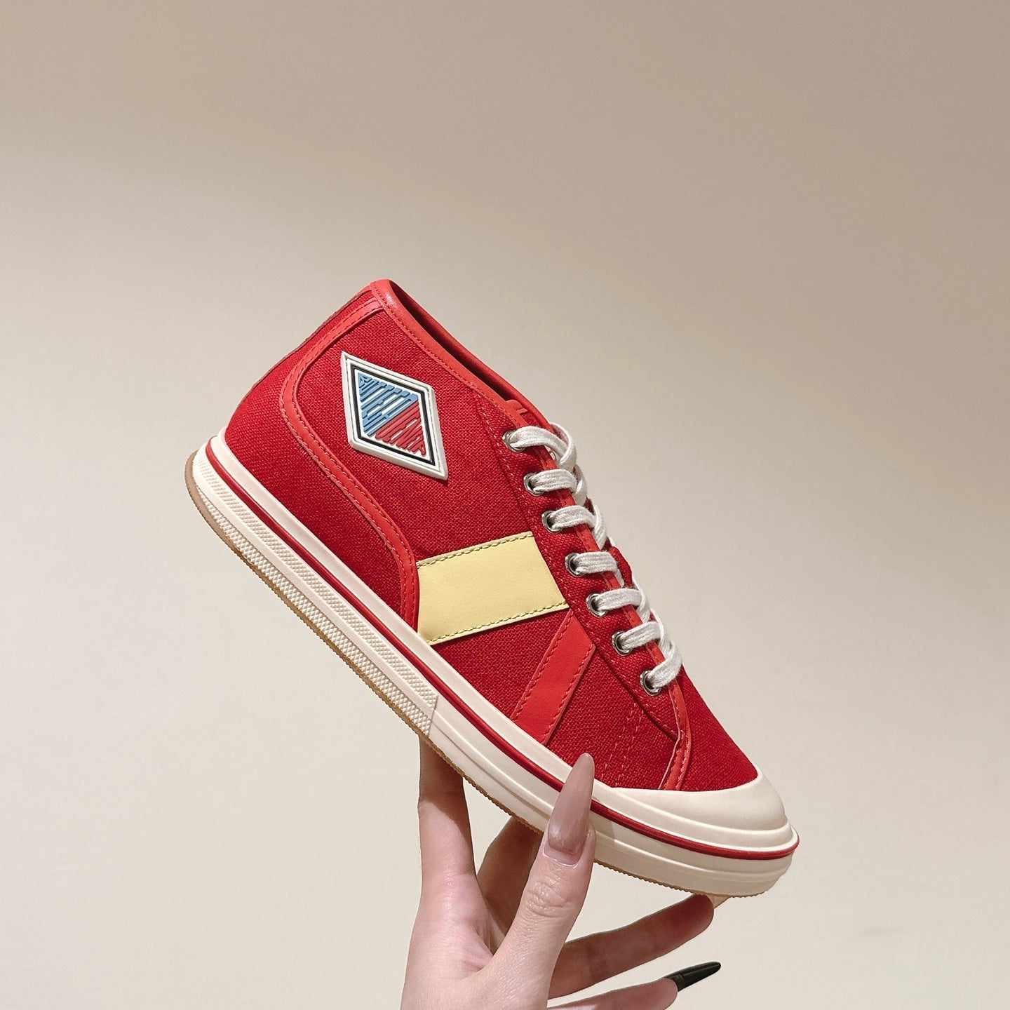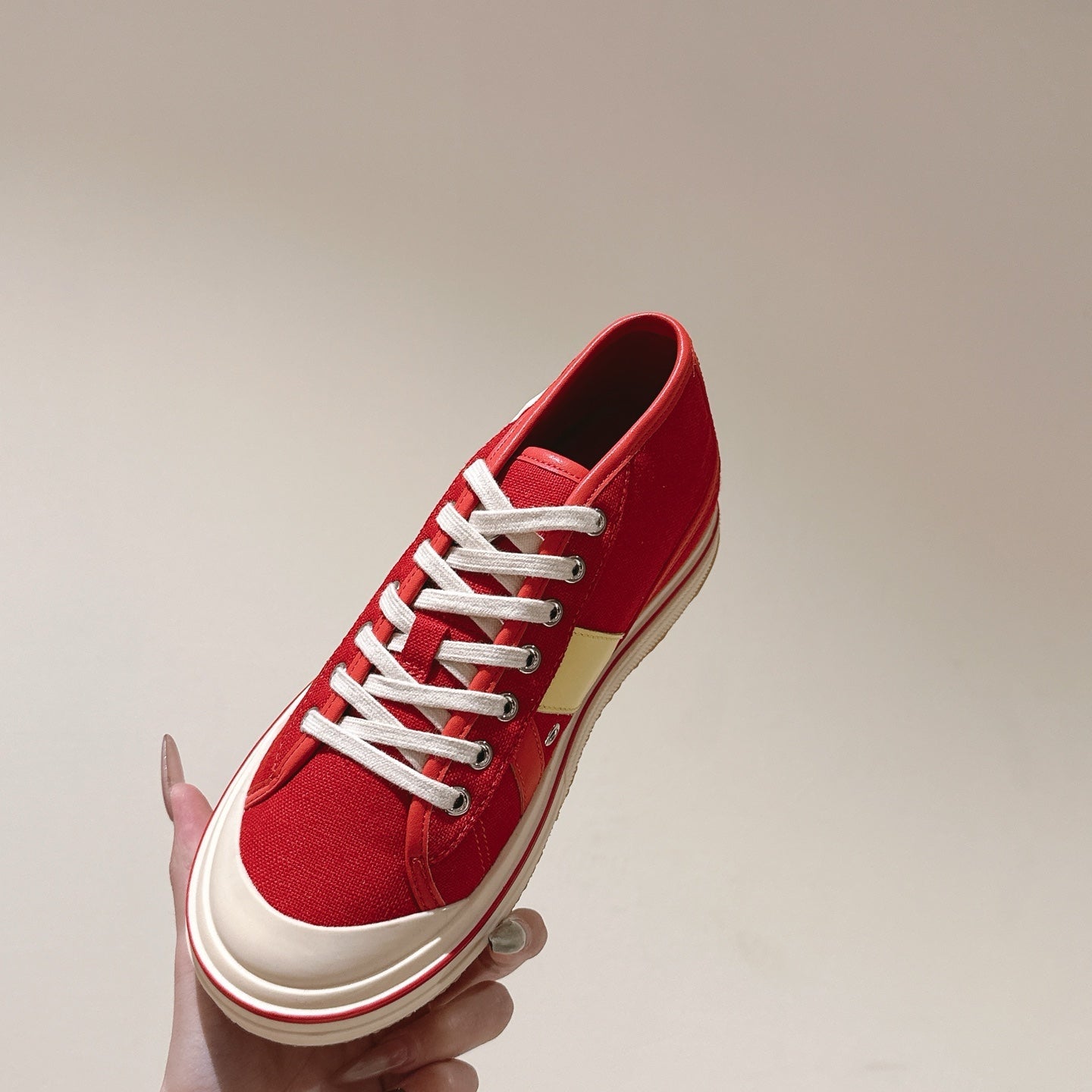 BV Eliot Sneaker Red/Light Yellow Cotton Calfskin 446194