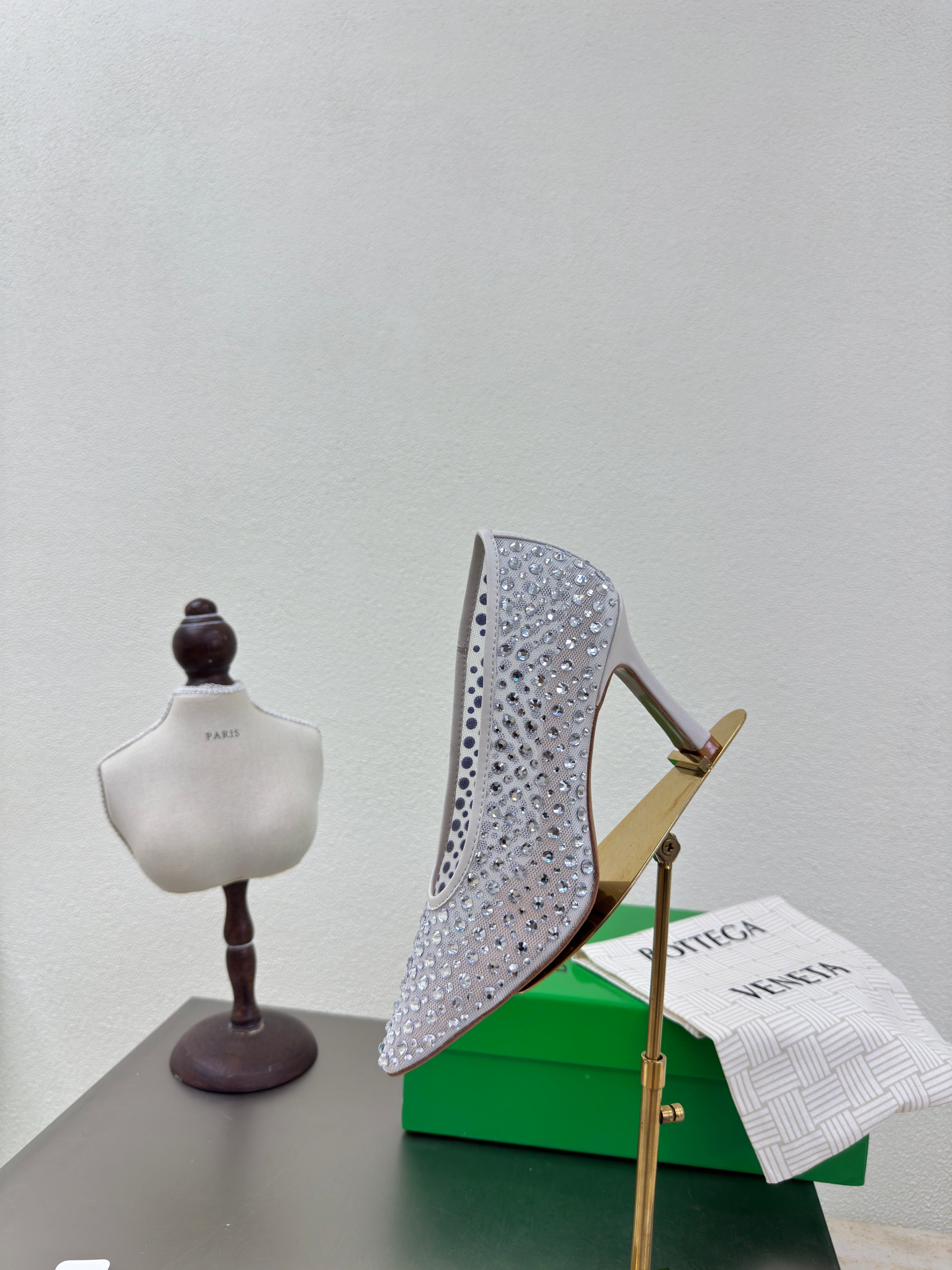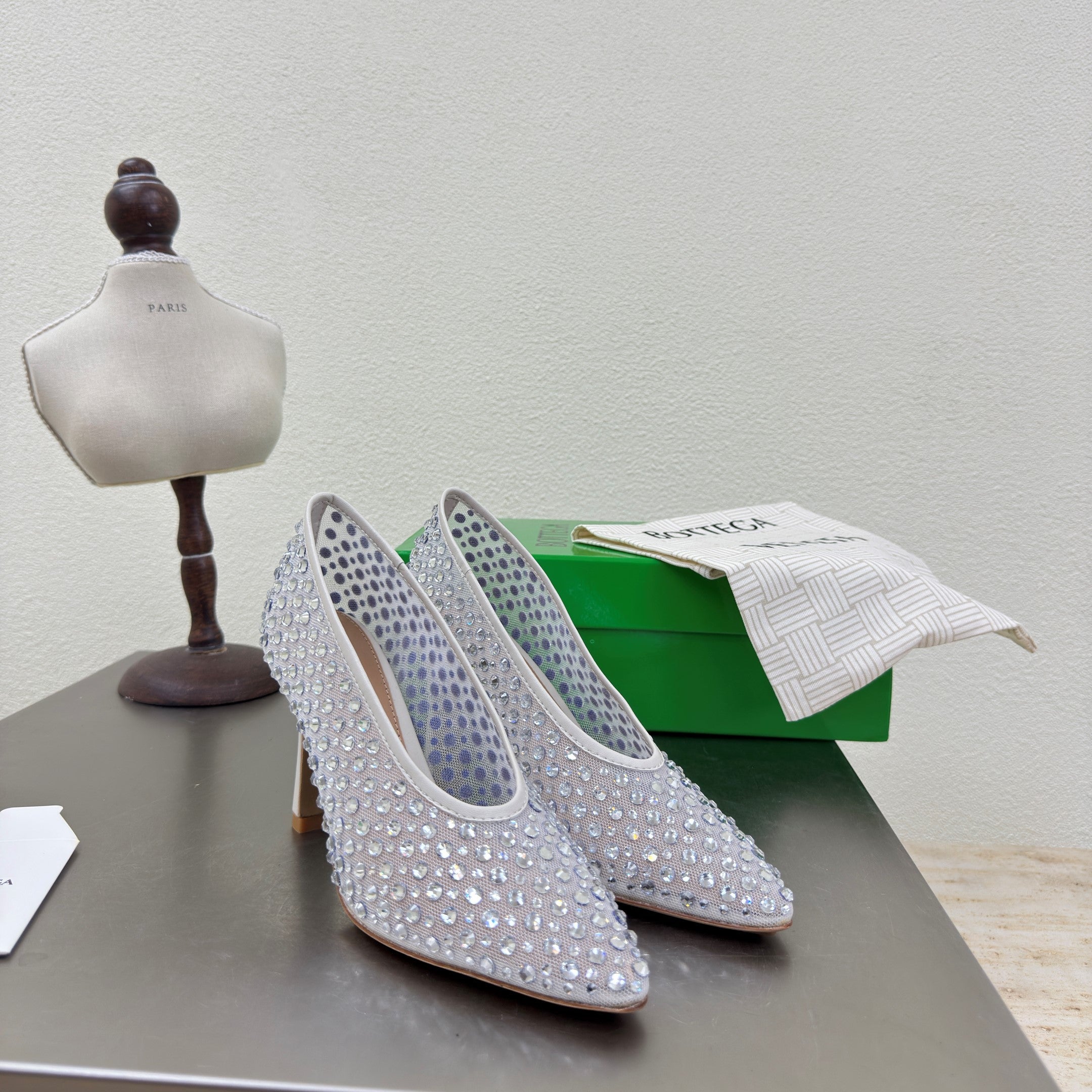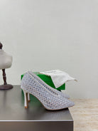 BV Rhinestones Sofia Pump 90mm White Mesh 428481