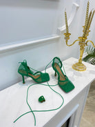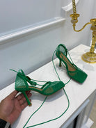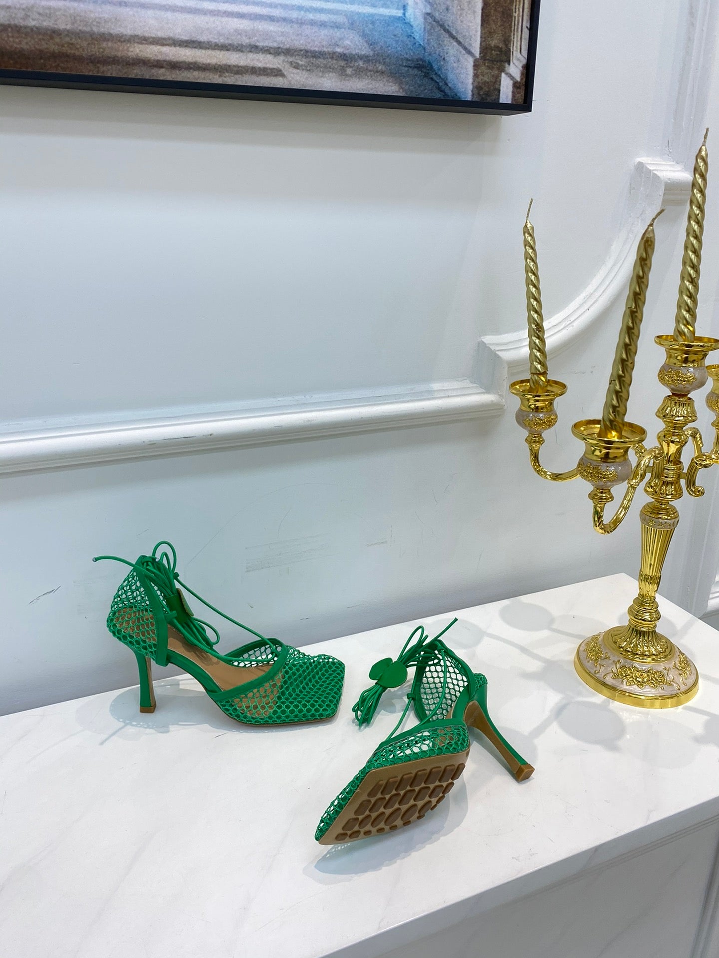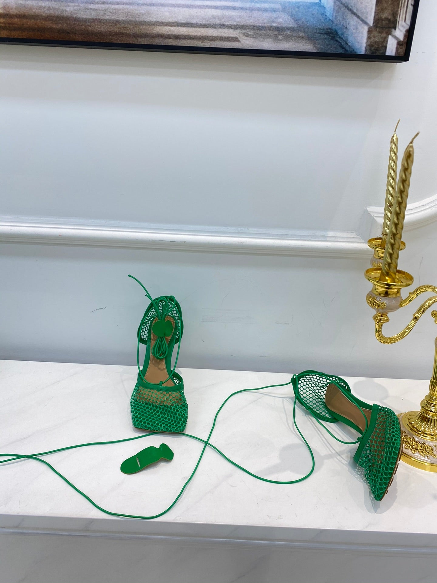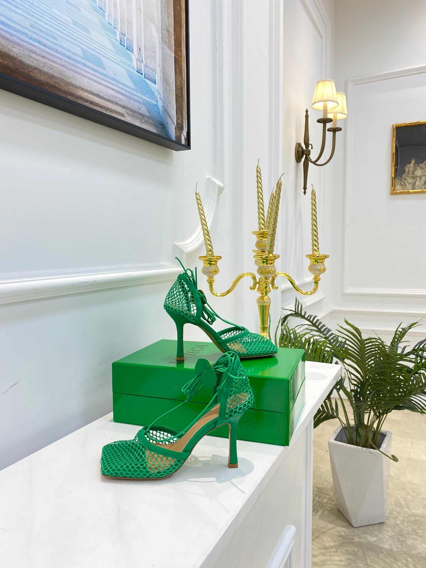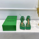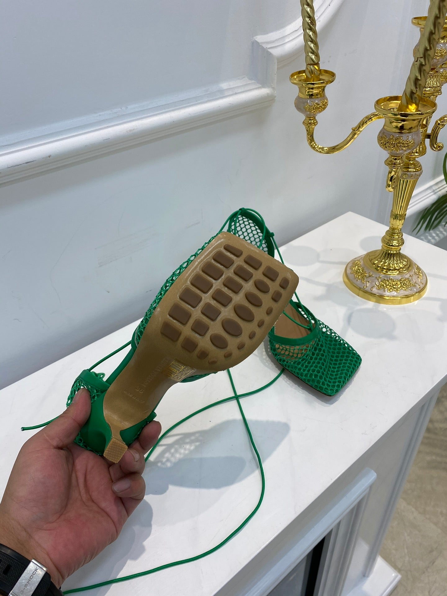 BV Stretch Lace-Up Sandal 9cm Green Mesh And Leather 568834