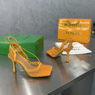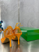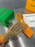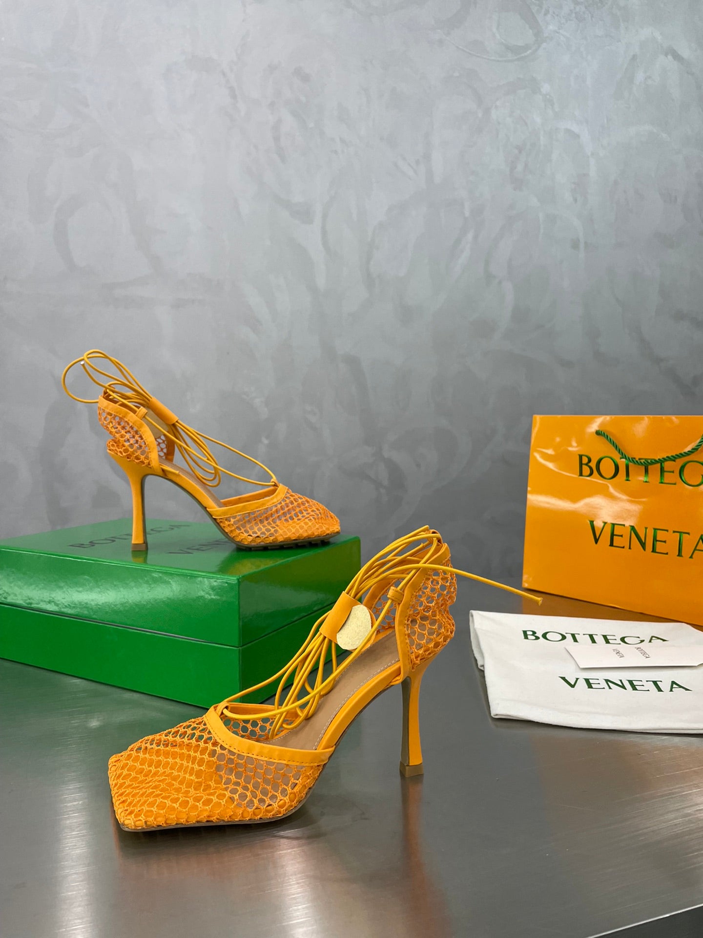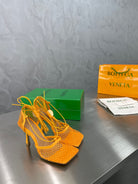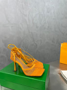 BV Stretch Lace-Up Sandal 9cm Happy Orange Mesh And Leather 568830