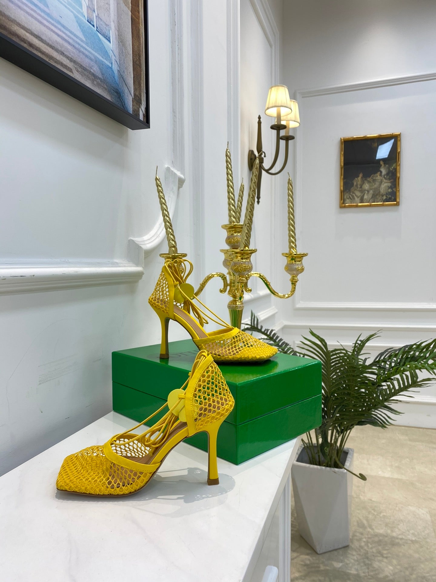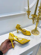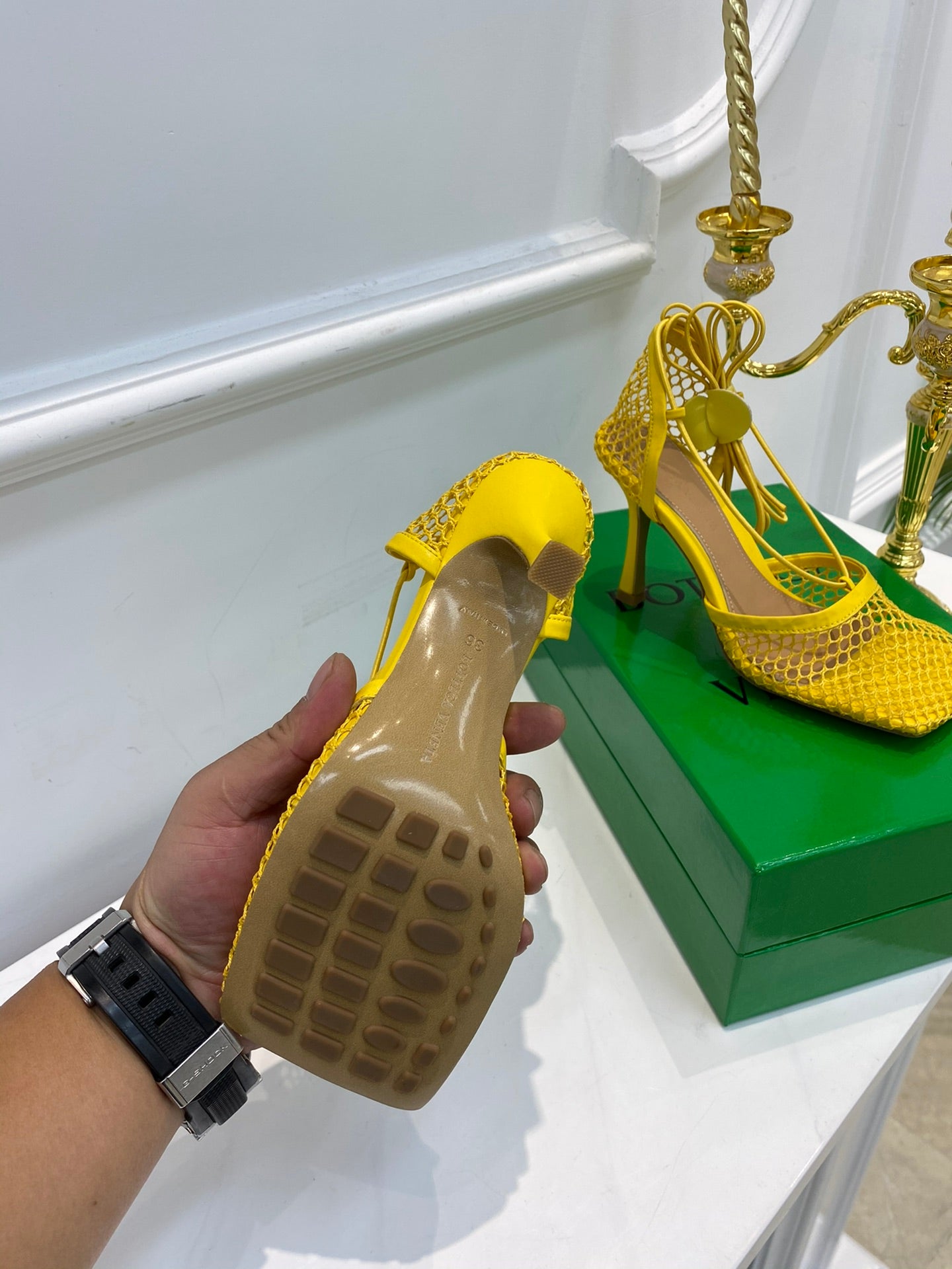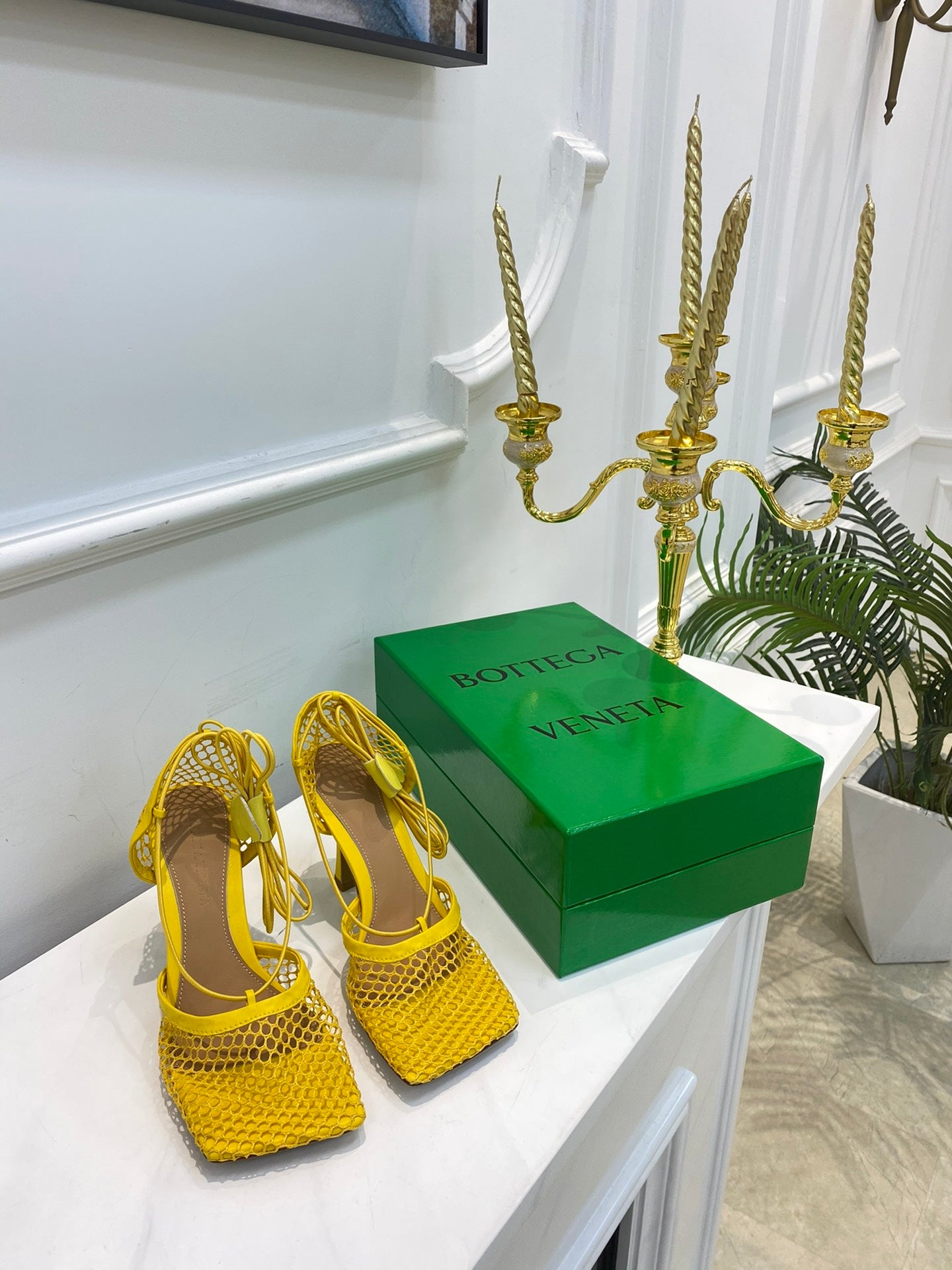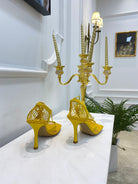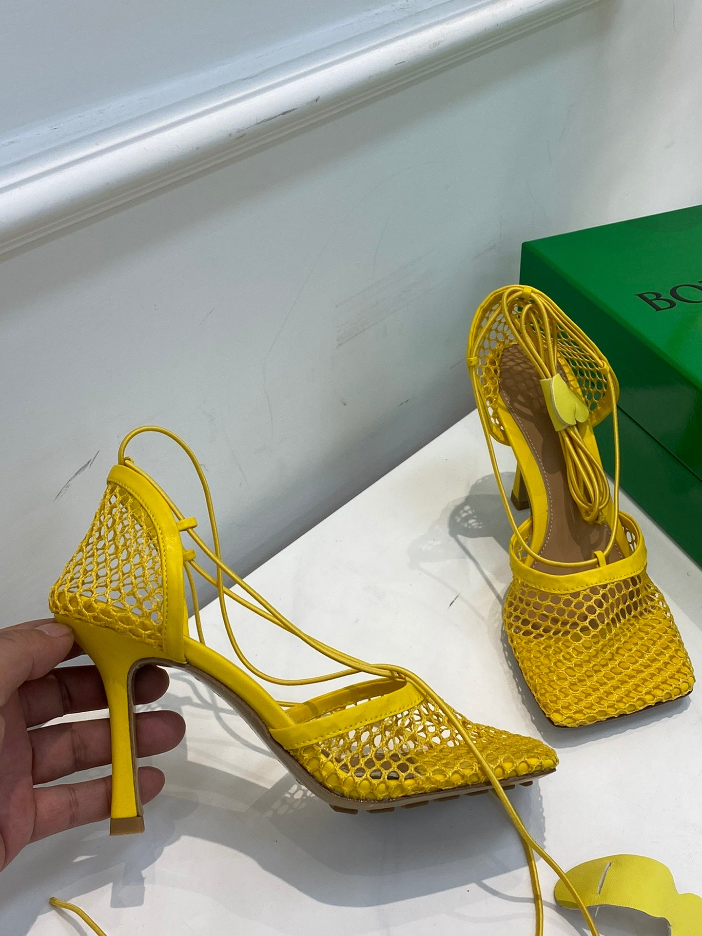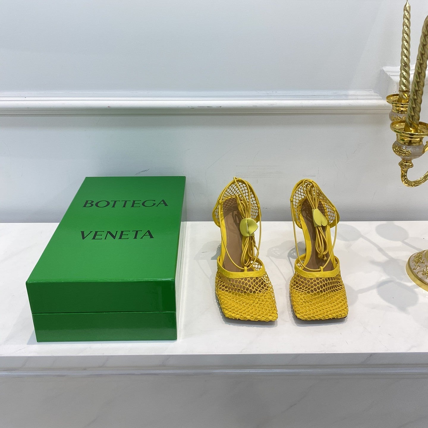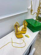 BV Stretch Lace-Up Sandal 9cm Yellow Mesh And Leather 568825