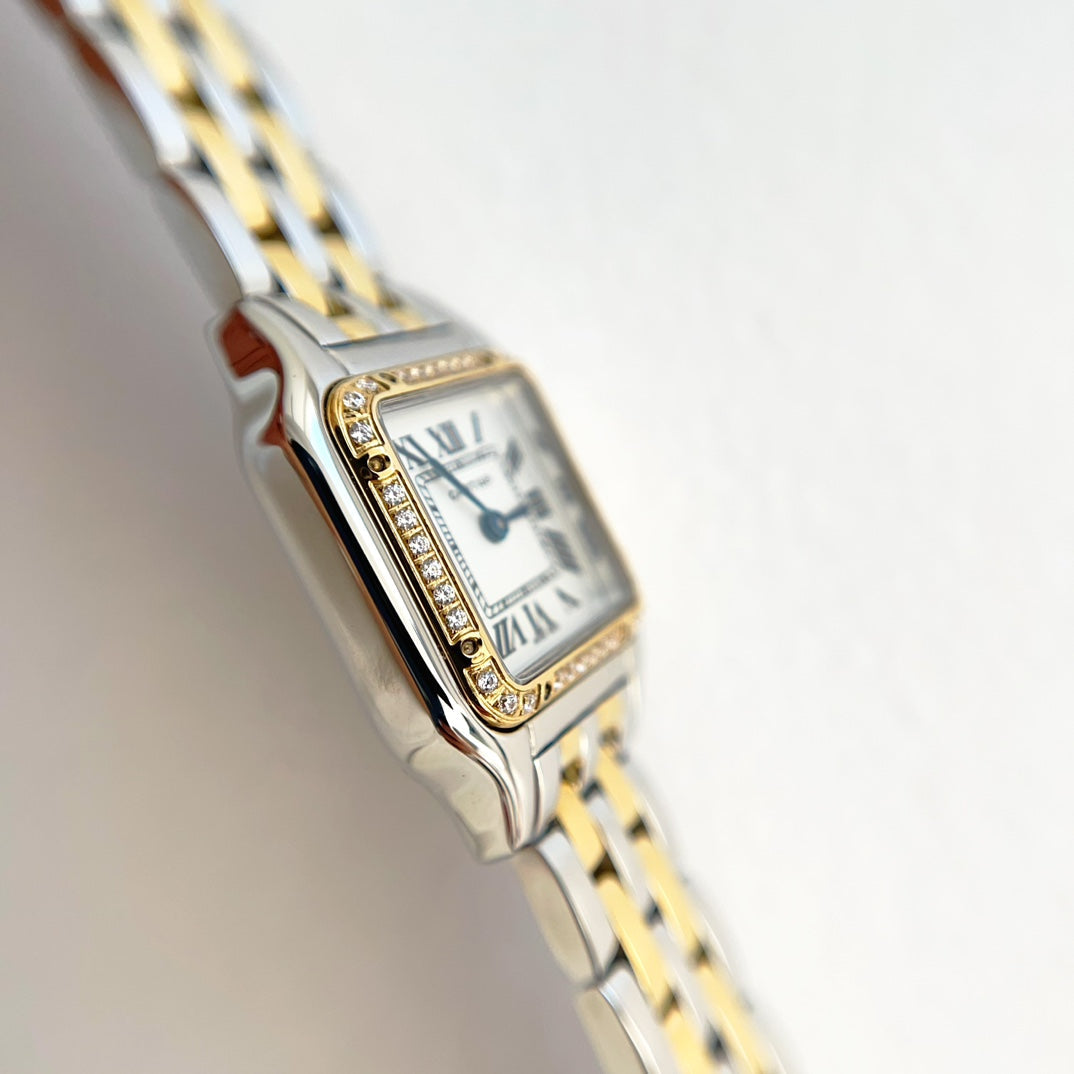 Panthere 22mm Gold Silver Diamond Bezel Double Chain 44cm