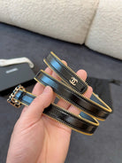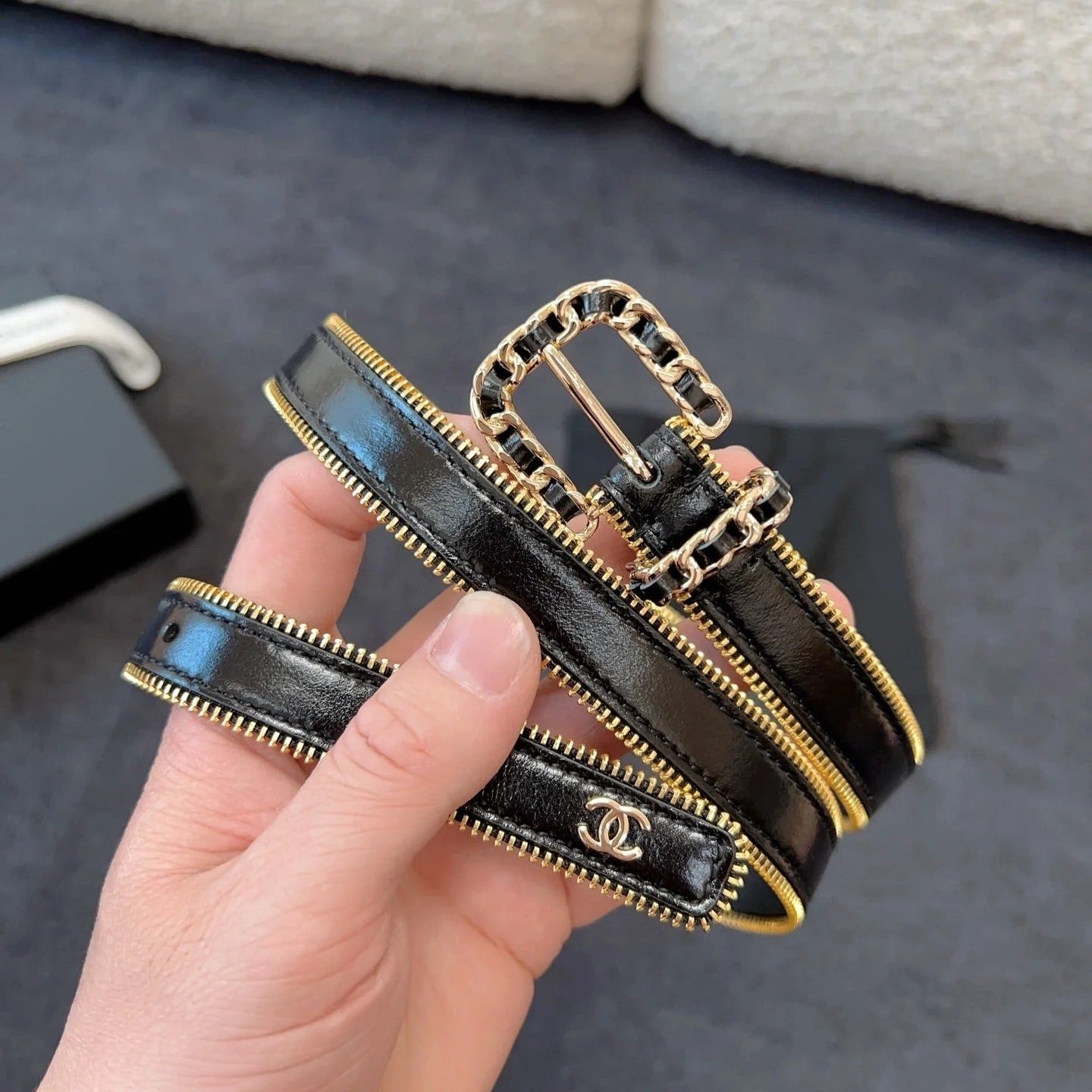 BELT 20MM IN BLACK CALFSKIN WITH INTERWOVEN CHAIN BUCKLE ZIPPER IN TRIM GOLD HARDWARE