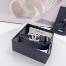 CC 30MM BELT IN BLACK EMBROIDERED CALFSKIN SILVER HARDWARE