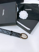 CC 30MM BELT IN BLACK EMBROIDERED CALFSKIN WHITE MIX BLACK METAL HARDWARE