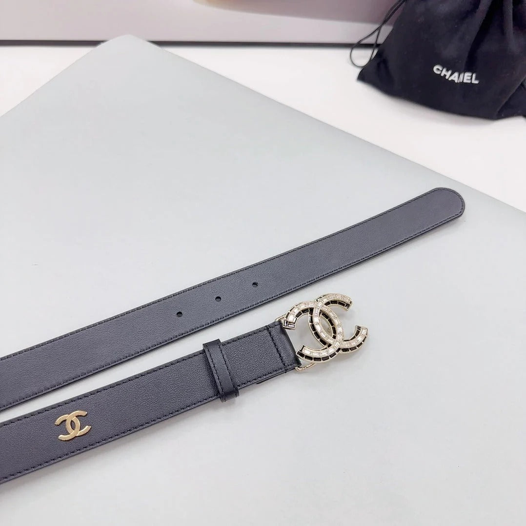 CC 30MM BELT IN BLACK SMOOTH CALFSKIN METAL LOGO GOLD HARDWARE